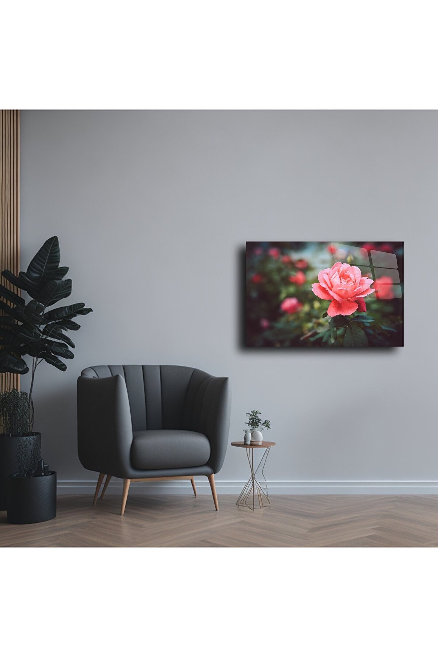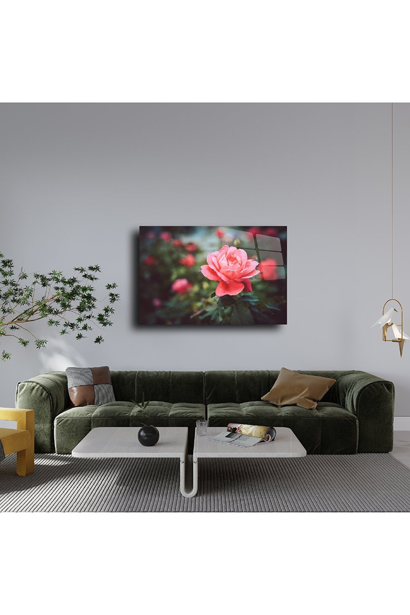 Bu zarif Cam Tablo, pembe gülün doğallığını ve romantizmini duvarlarınıza taşıyor. Gerçekçi detaylarla işlenmiş çiçek fotoğrafı, temperli cam üzerine yüksek çözünürlüklü olarak basılmıştır ve ışıkla buluştuğunda etkileyici bir parıltı sunar.