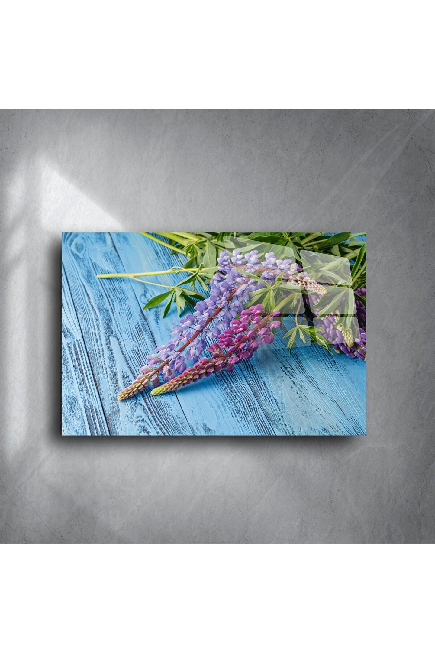 LEYLASER Cam Tablo Mor Mavi Lupin Çiçekleri