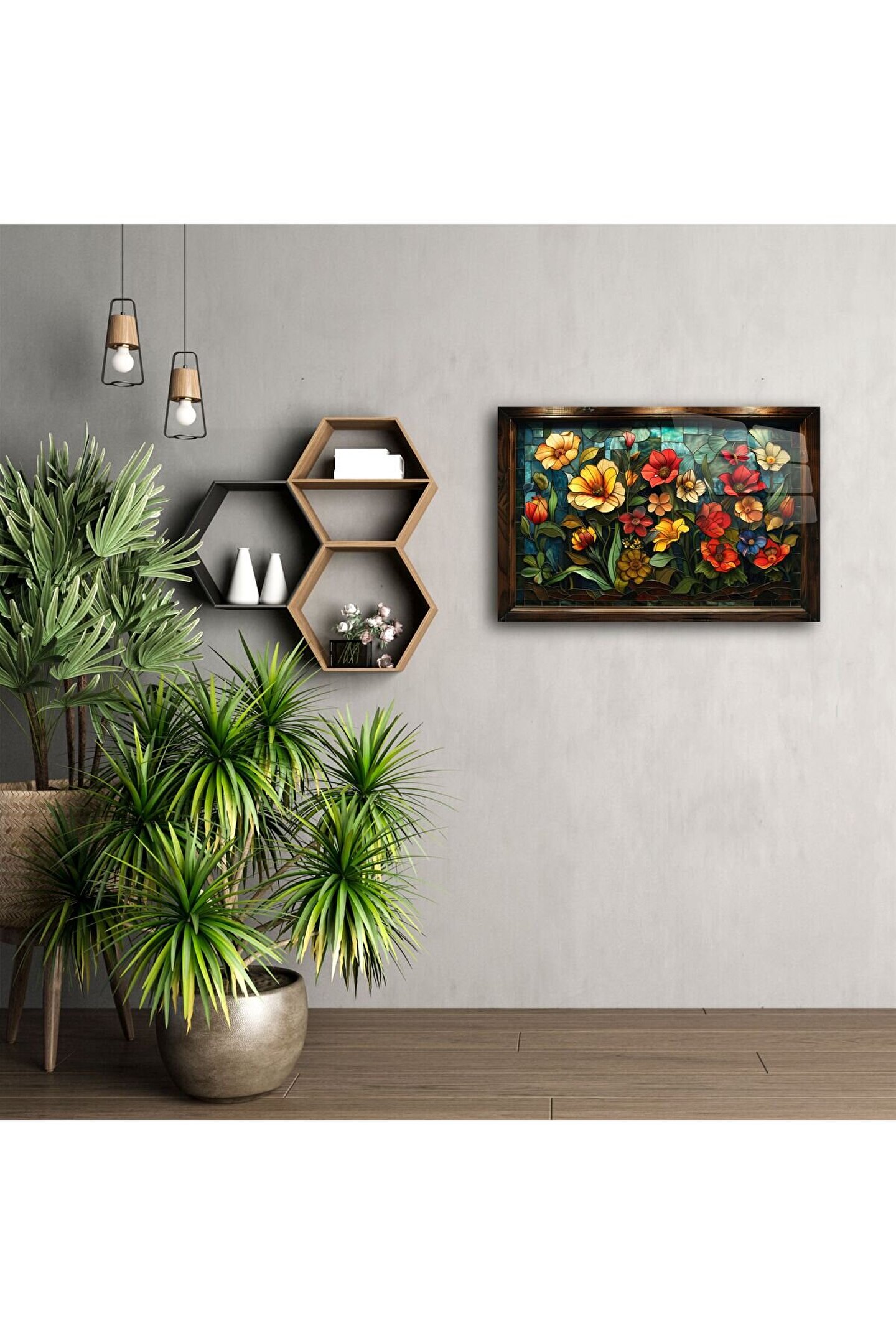 Parlak cam yüzeyi ve sade çizgileriyle dikkat çeken bu tasarım, yaratıcılığınızı ve tarzınızı yansıtan bir vurgu parçası olabilir. Tek başına asılabileceği gibi, galeri duvar konseptinizin parçası olarak da mükemmeldir.