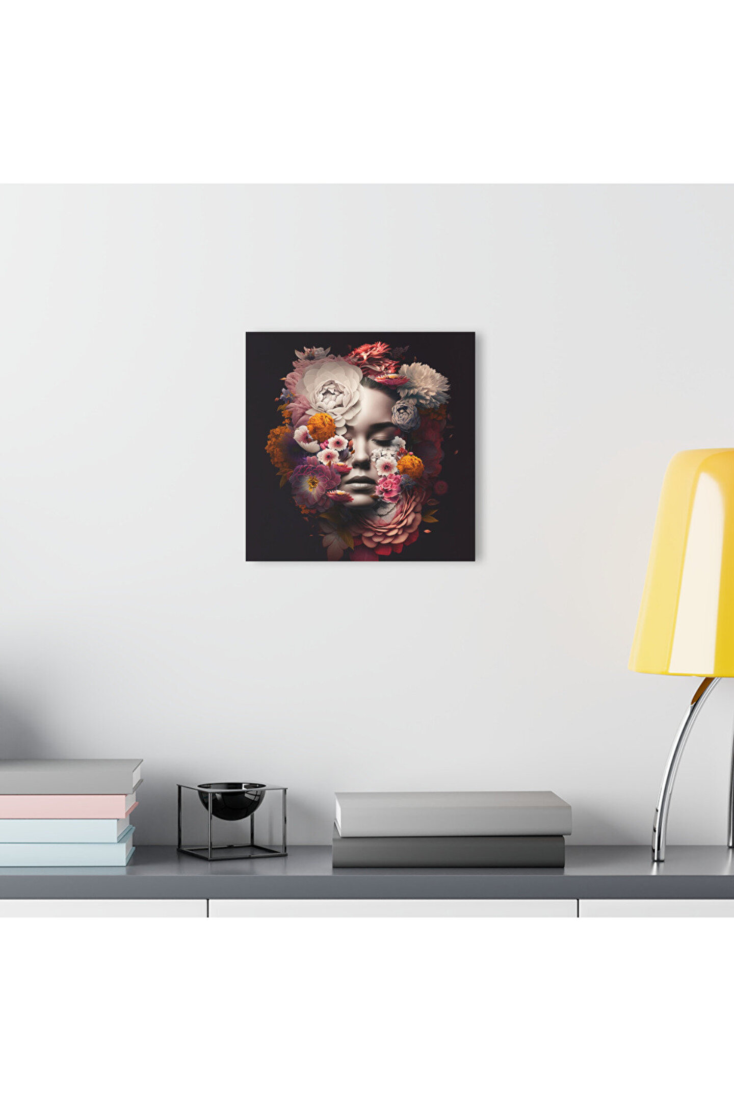 LEYLASER Çiçekli Kız Cam Tablo Duvar Dekoru model 2