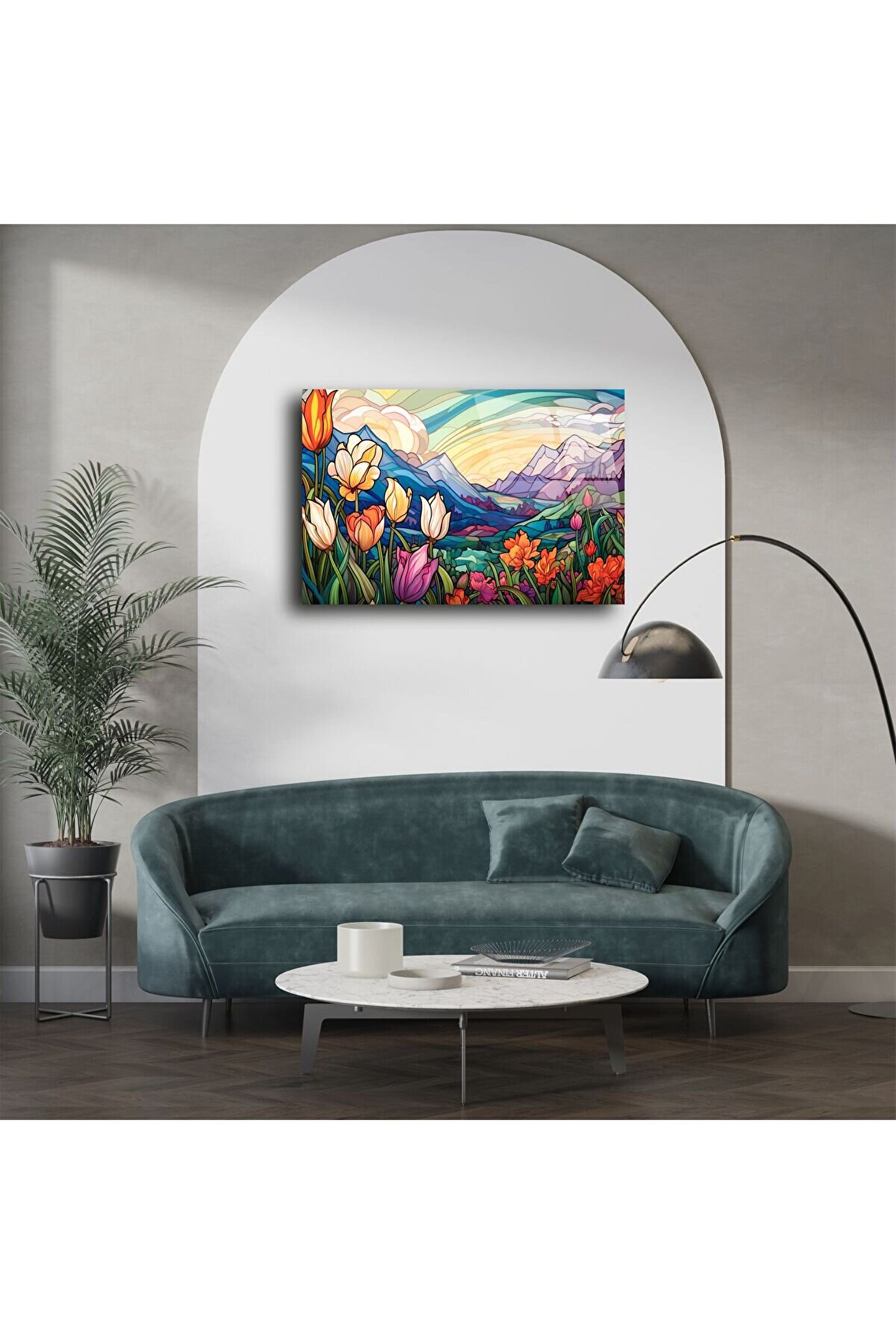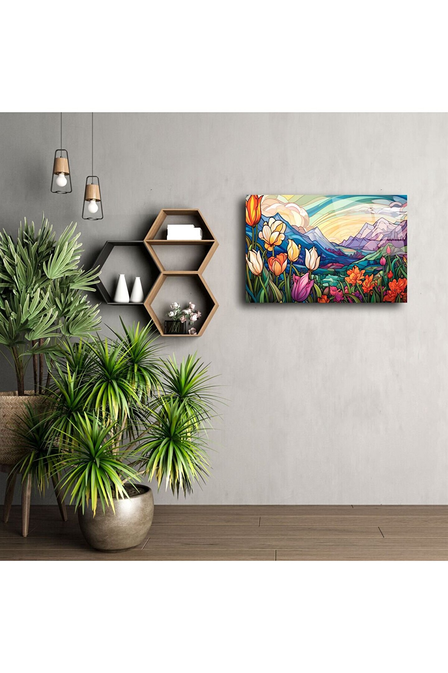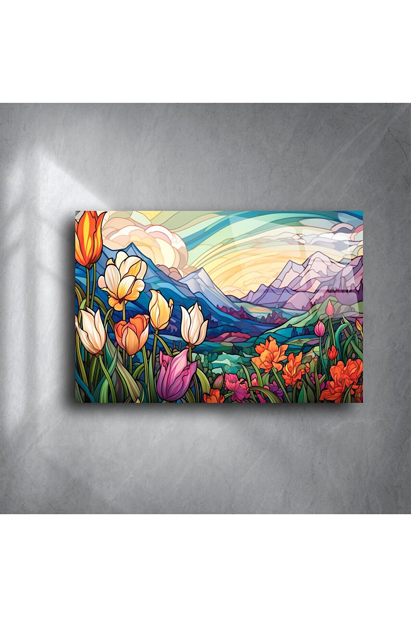 LEYLASER Dağ Manzaralı Lale Cam Tablo