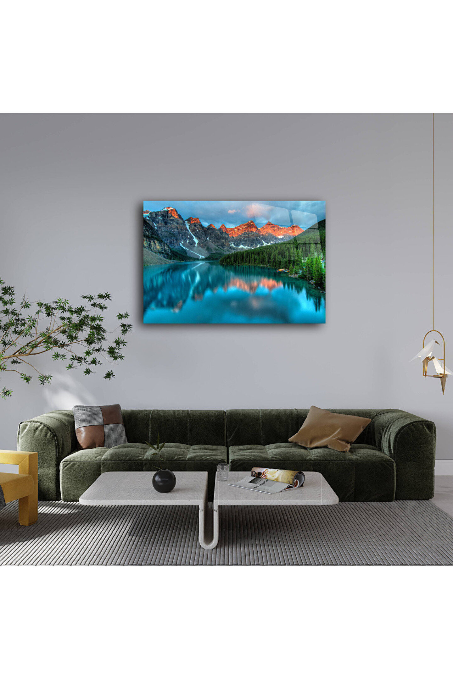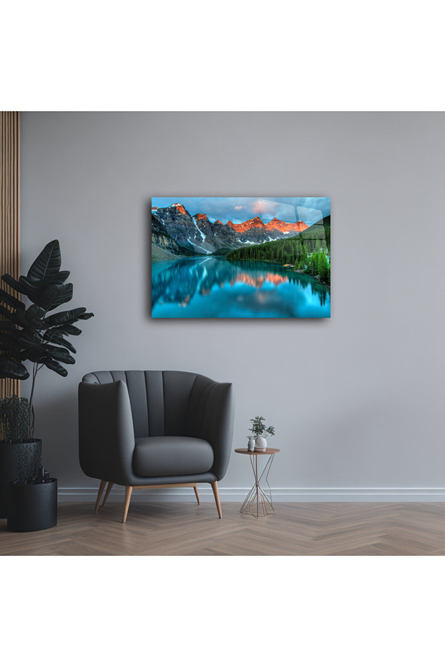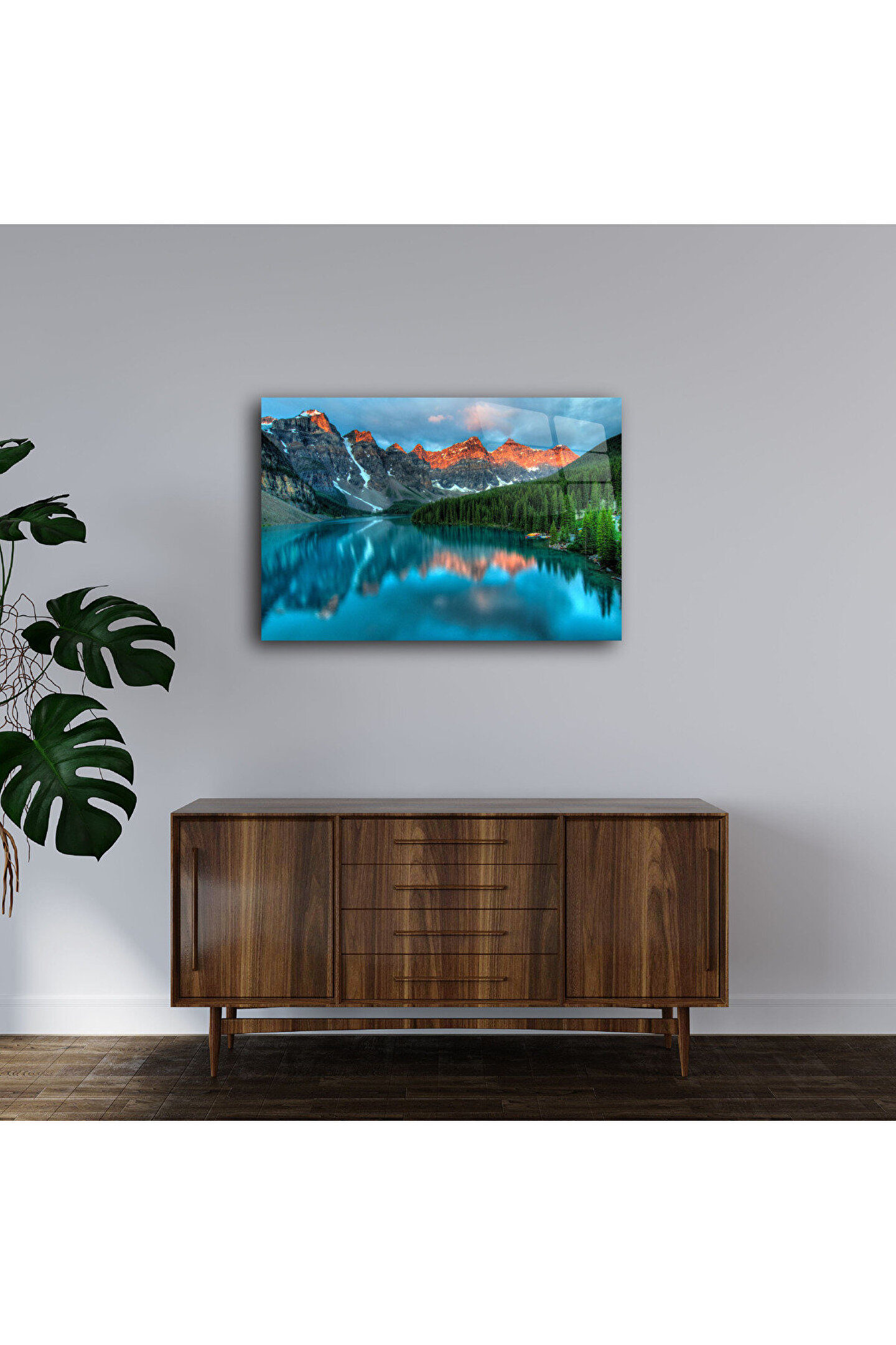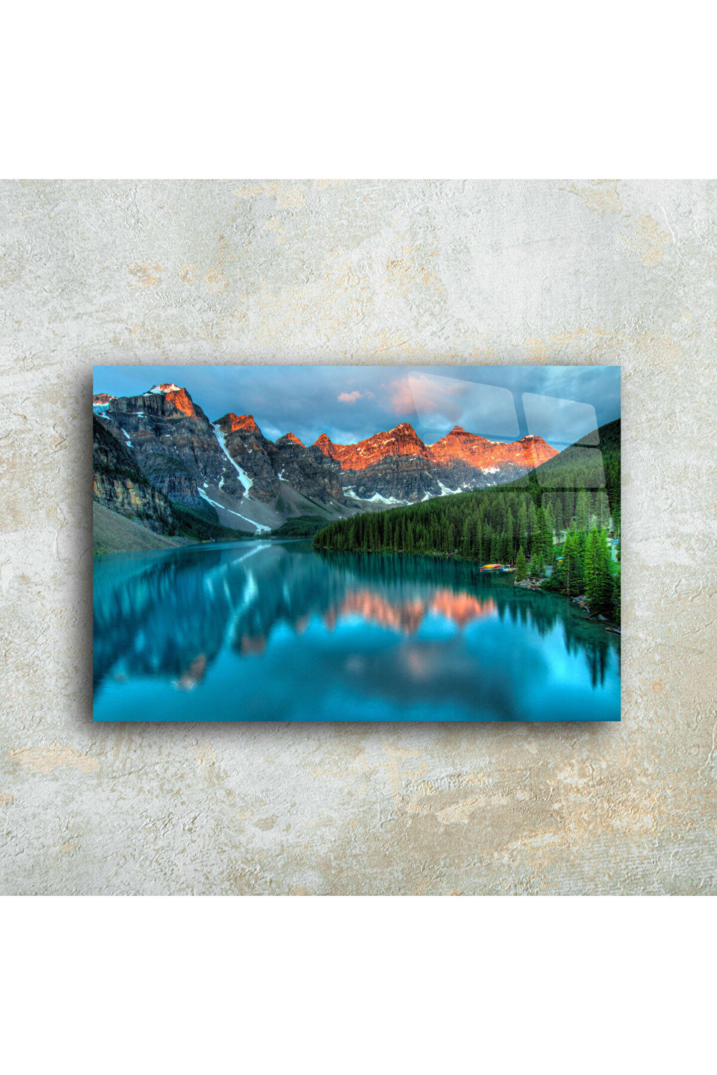 LEYLASER Dağ ve Göl Manzarası Cam Tablo Duvar Dekoru