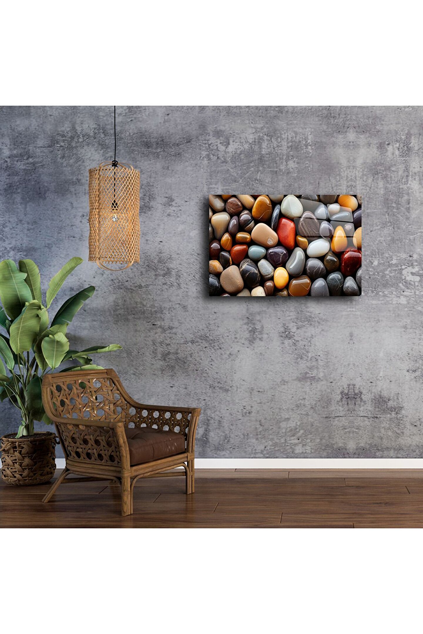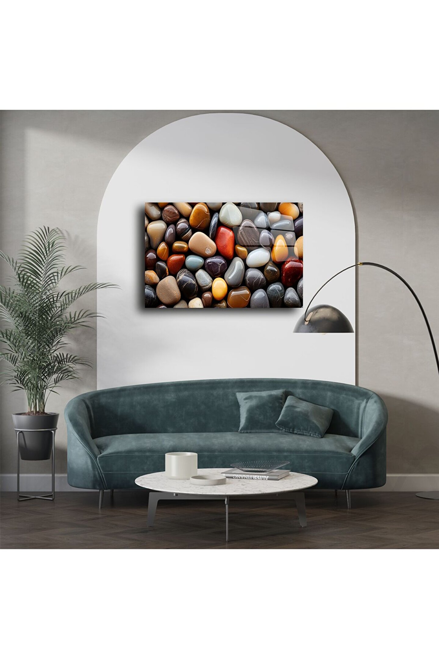 Bu doğal taş desenli temperli cam tablo, sade zarafet ile doğanın içsel huzurunu birleştiriyor. Her biri farklı doku ve renklerdeki taşların yer aldığı bu görsel, mekânınıza sakinlik, denge ve modern şıklık katar. Yüksek çözünürlüklü baskı, parlak temperli cam yüzeyle birleşerek etkileyici bir derinlik ve canlılık sunar.