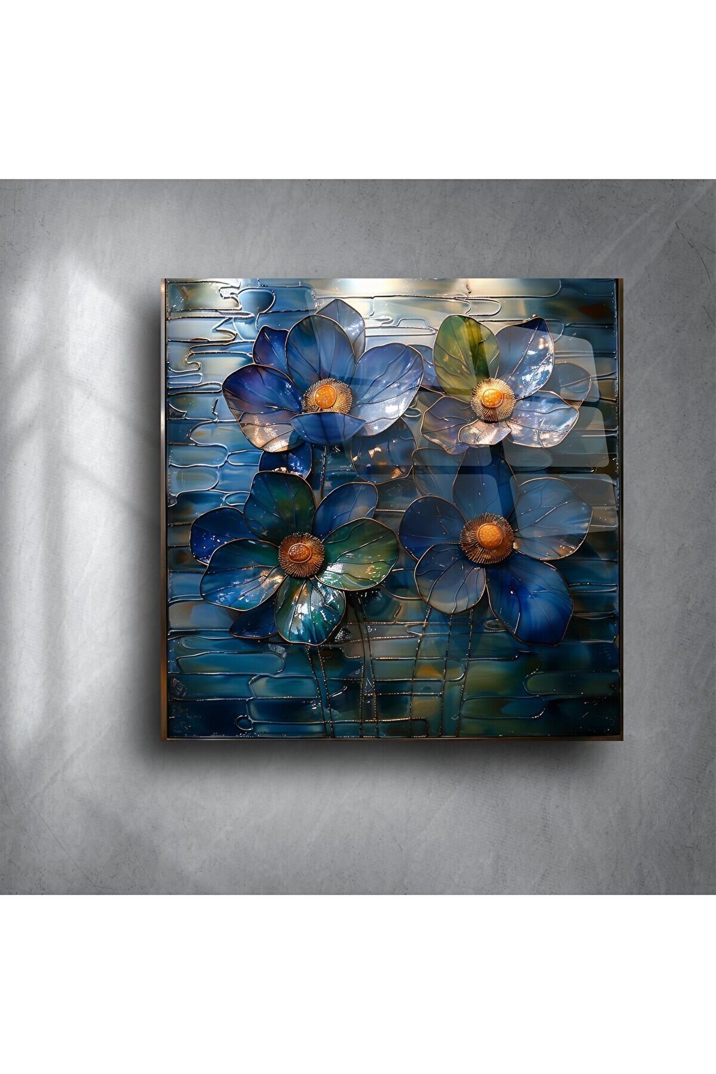 Bu el yapımı cam mozaik çiçek tablo, zarif mavi tonları ve 3 boyutlu tasarımıyla duvarlarınıza modern ve sofistike bir hava katıyor. Her bir çiçek, özenle işlenmiş cam parçalarıyla oluşturulmuş olup, gün ışığında ışıltı kazanarak bulunduğu alana canlılık ve derinlik katar.