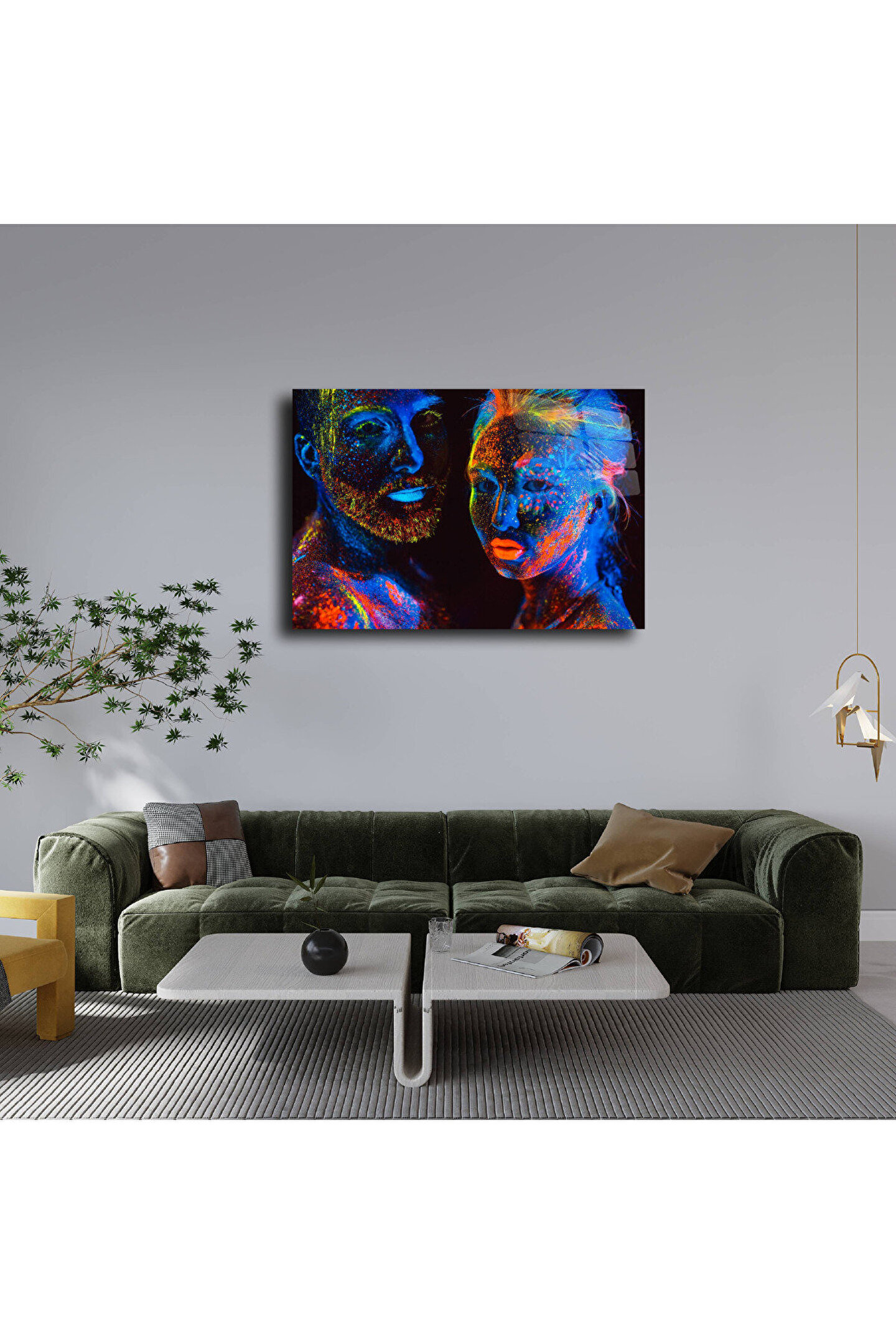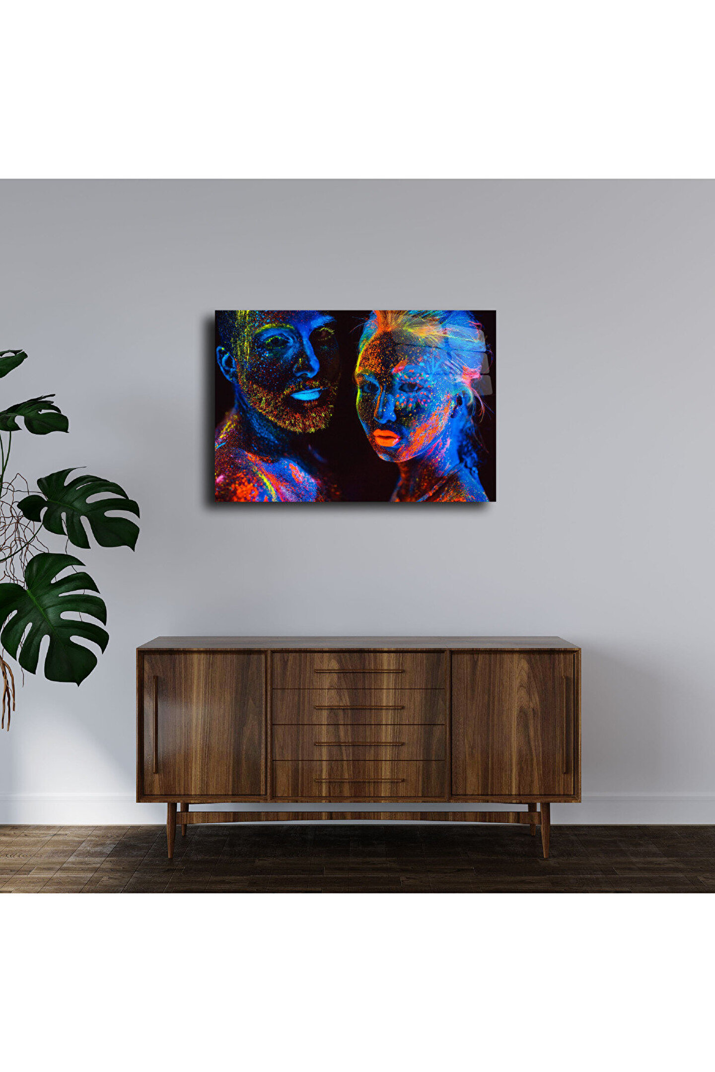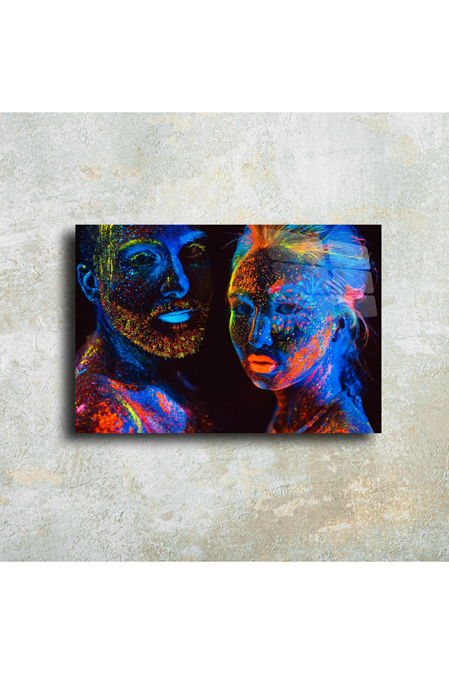 LEYLASER Fosfor Renkli İnsan Portreleri Cam Tablo Duvar Dekoru