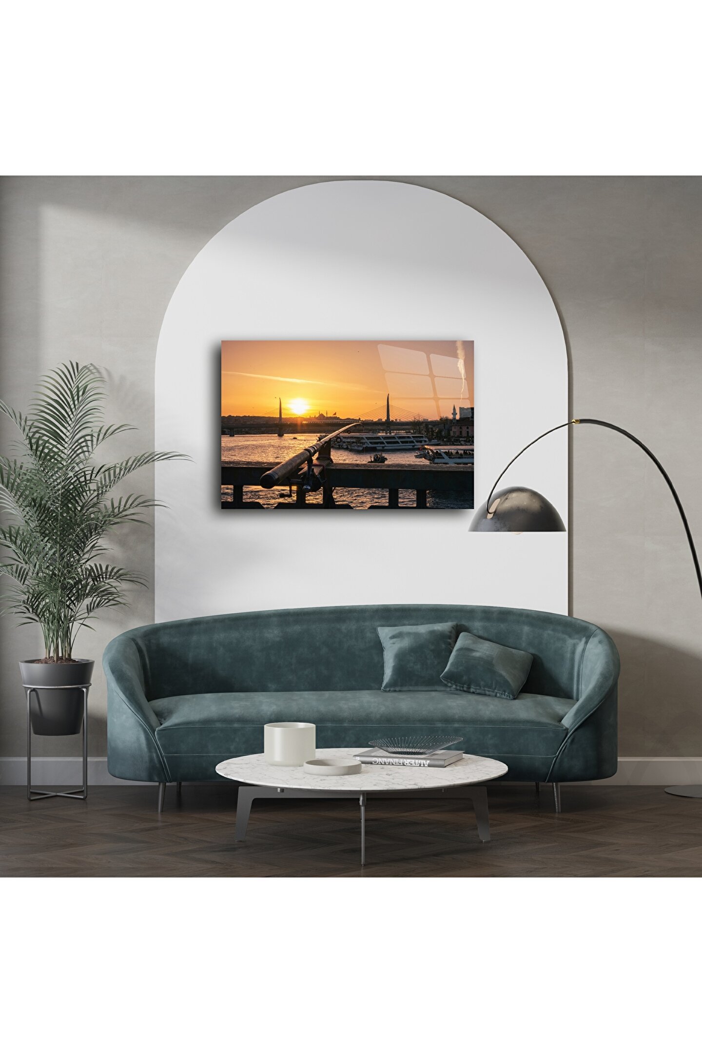LEYLASER Galata Köprüsü Gün Batımı Cam Duvar Tablosu
