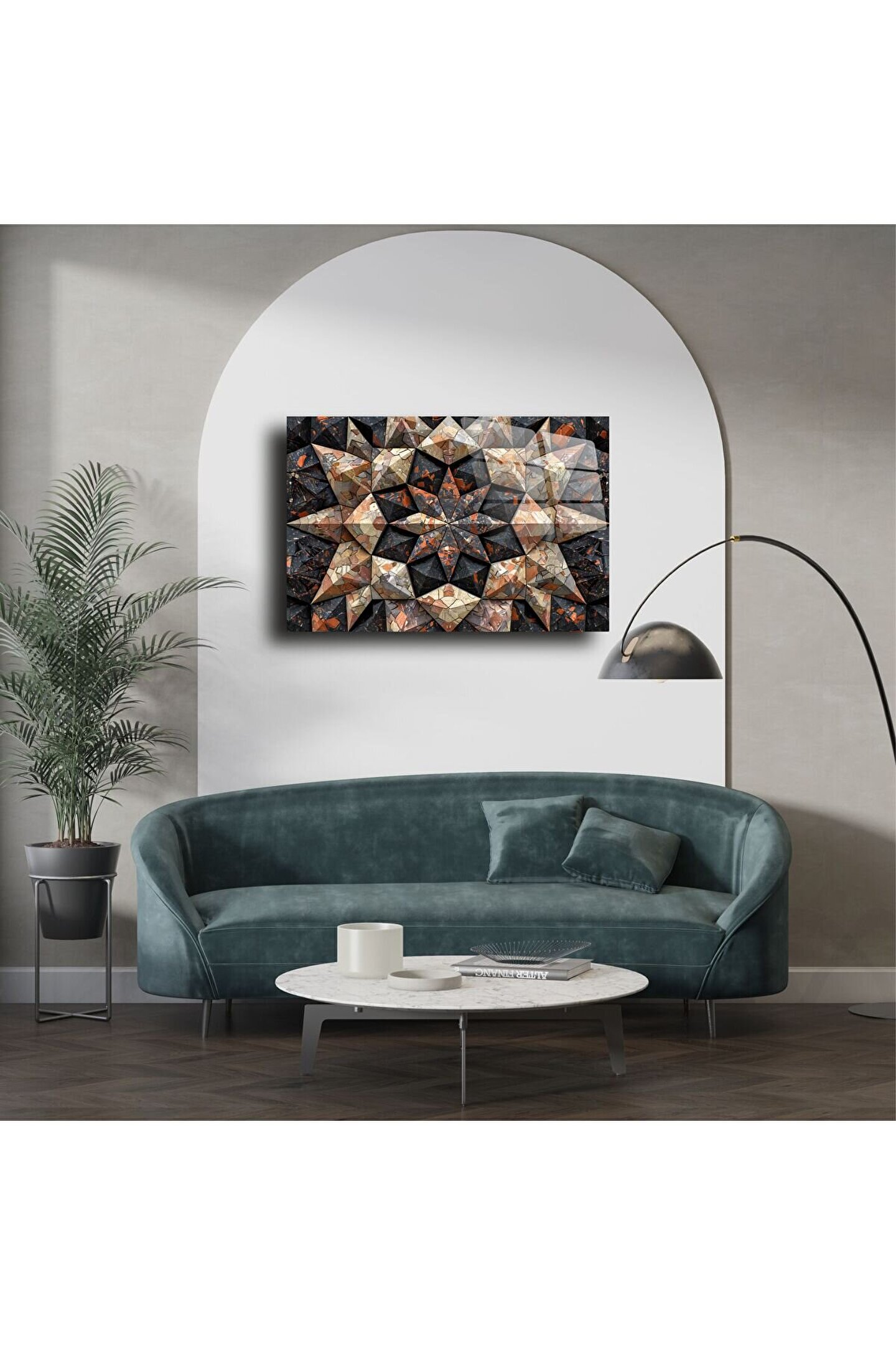 Göz alıcı derinlik efektiyle tasarlanmış bu geometrik cam tablo, siyah ve toprak tonlarının eşsiz uyumunu modern bir estetikle buluşturuyor. Kaliteli temperli cam üzerine yüksek çözünürlüklü baskı uygulanarak üretilmiştir. Bu lüks duvar sanatı, evinizin ya da ofisinizin havasını değiştirerek sofistike bir görünüm sunar.