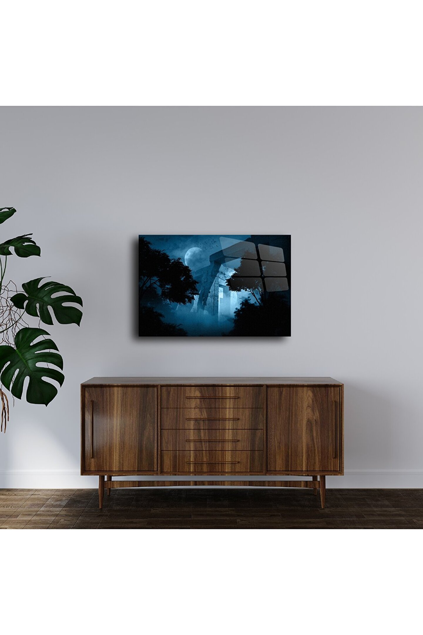 Bu Ay Işığı Tapınağı Fantastik Duvar Tablosuile gizemli bir rüyaya adım atın — eski harabeler, dolunayın altında ve sisli orman gölgeleri arasında parıldıyor. Premium kalite kanvas üzerine basılmış bu eser, her gölge ve ışık oyunuyla hayal gücünüzü harekete geçiriyor.