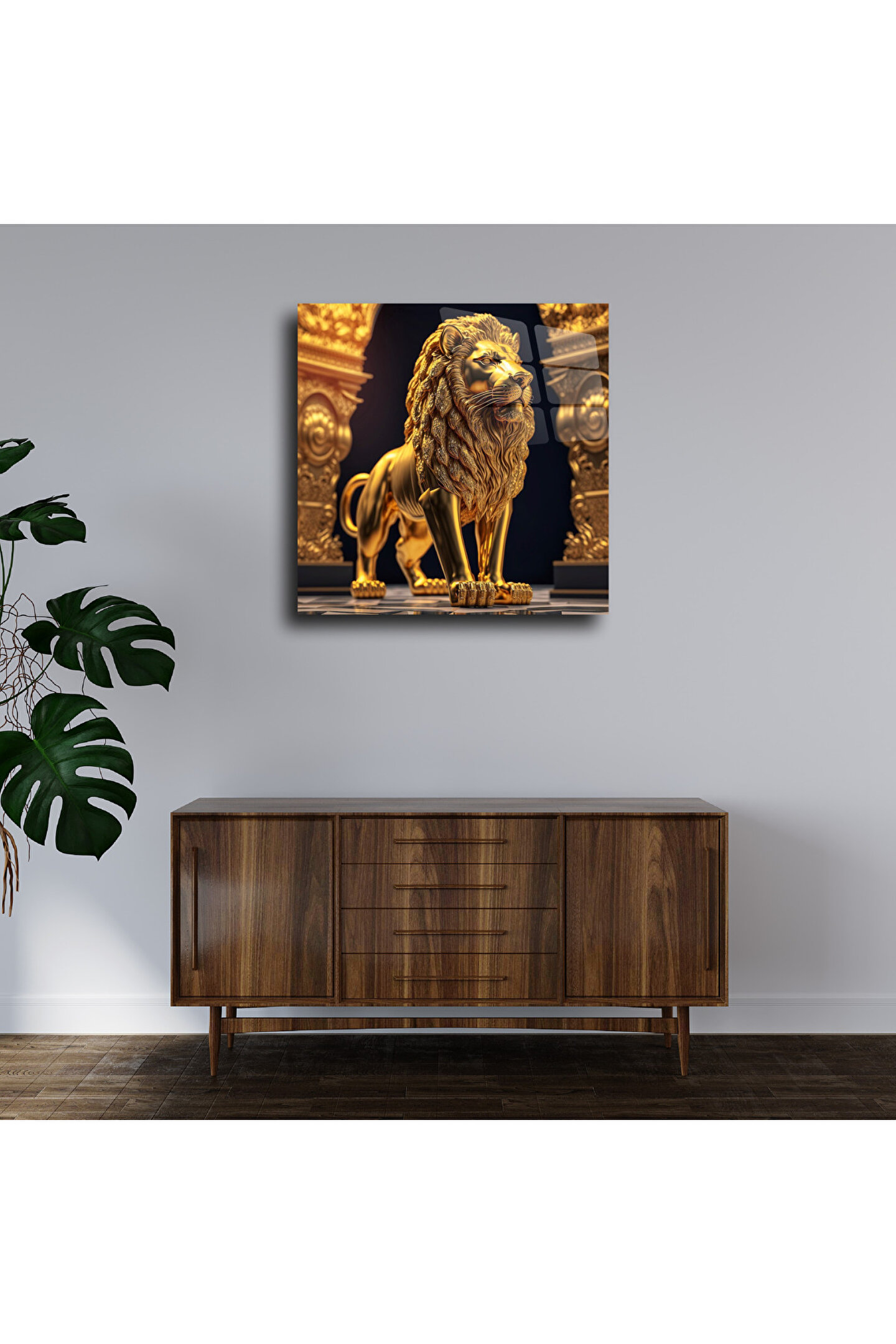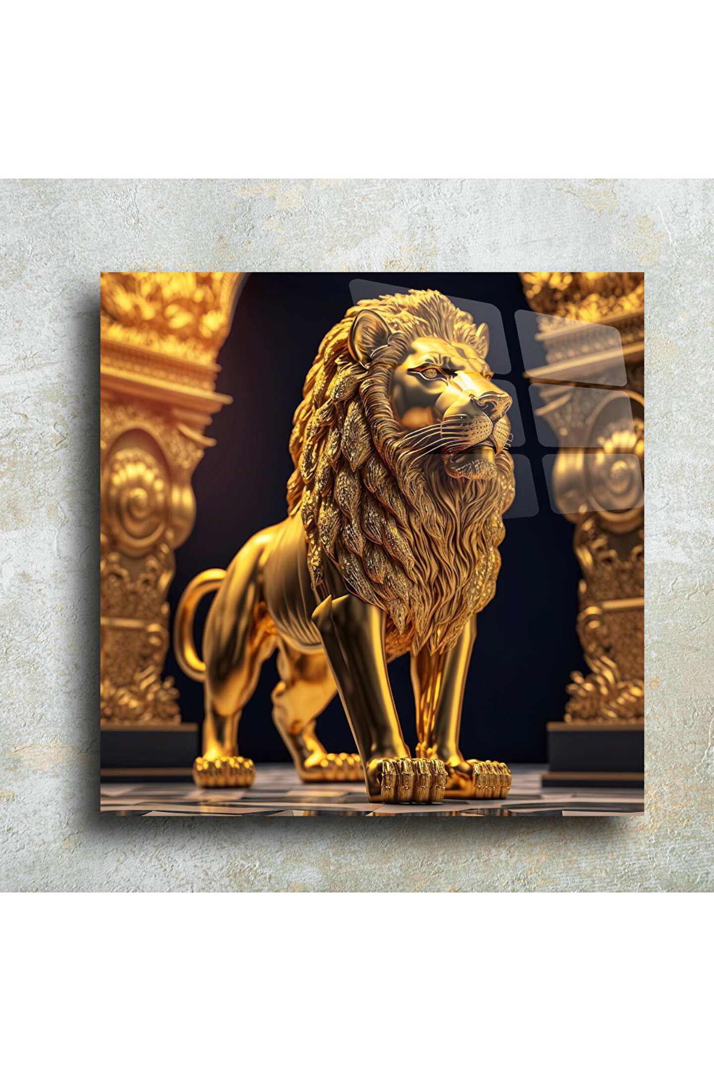 LEYLASER Gold Altın Sarısı Aslan Cam Tablo Duvar Dekoru