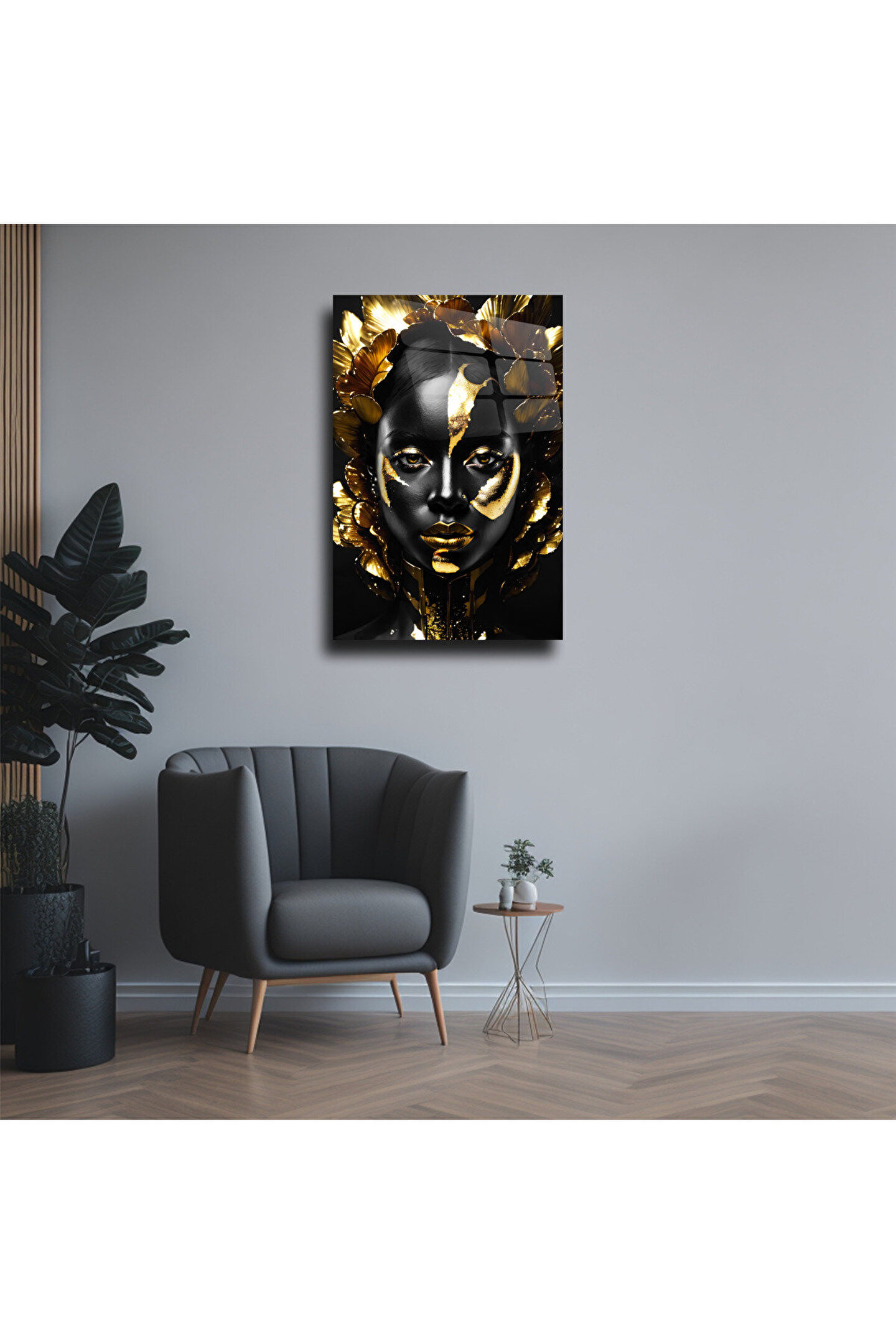 LEYLASER Gold Kadın Görseli Cam Tablo Duvar Dekoru 1
