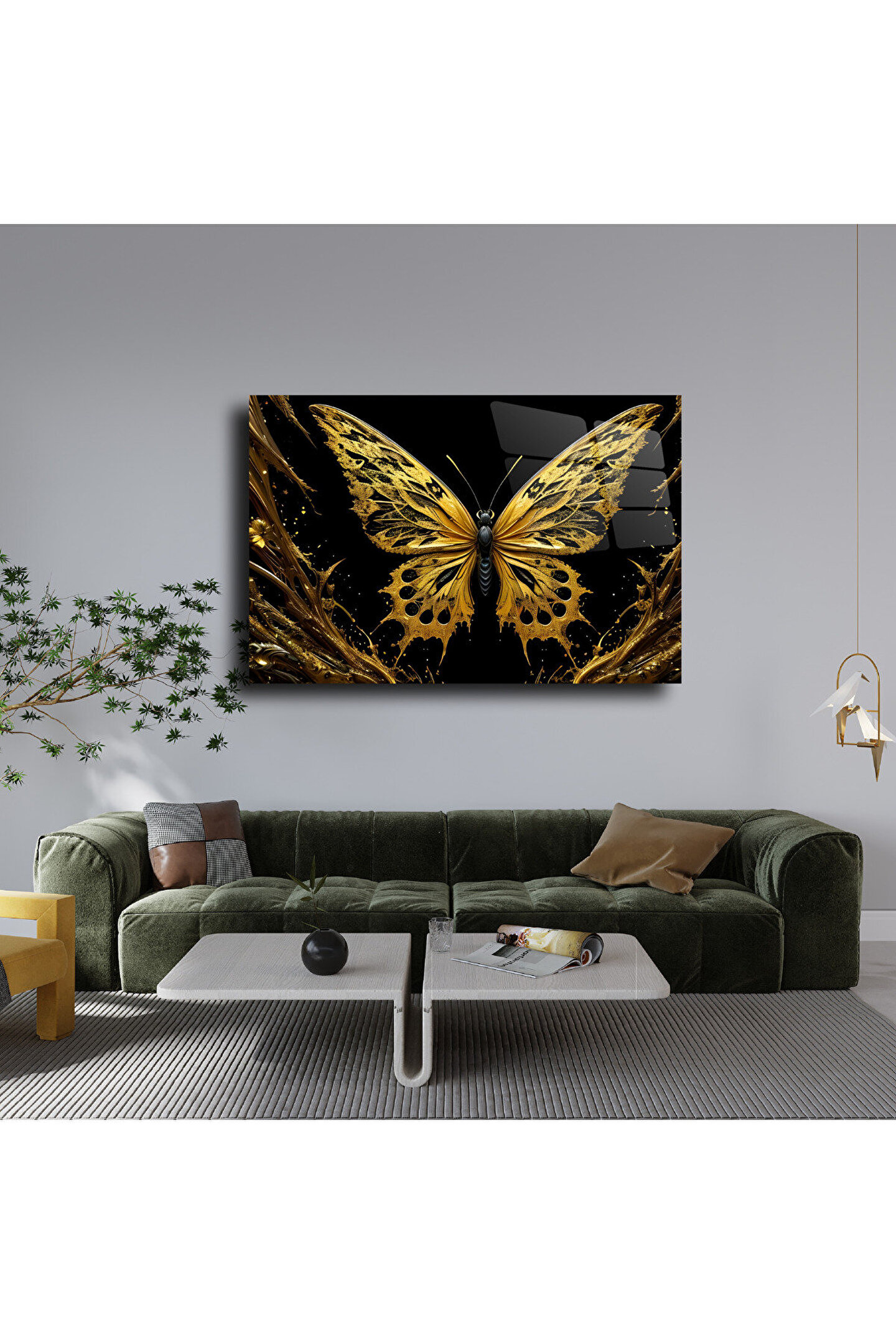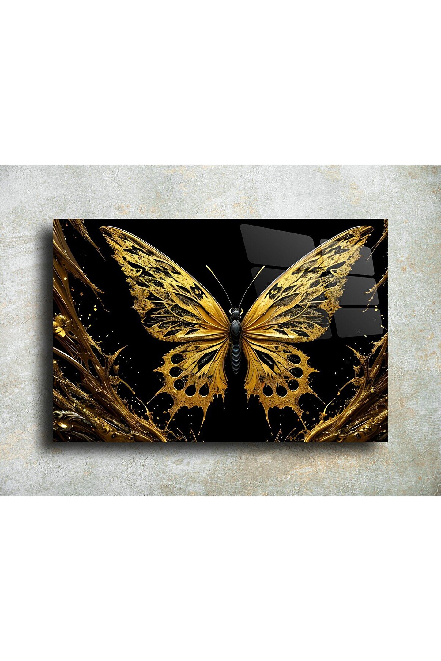 LEYLASER Gold Kelebek Cam Tablo Duvar Dekoru 2