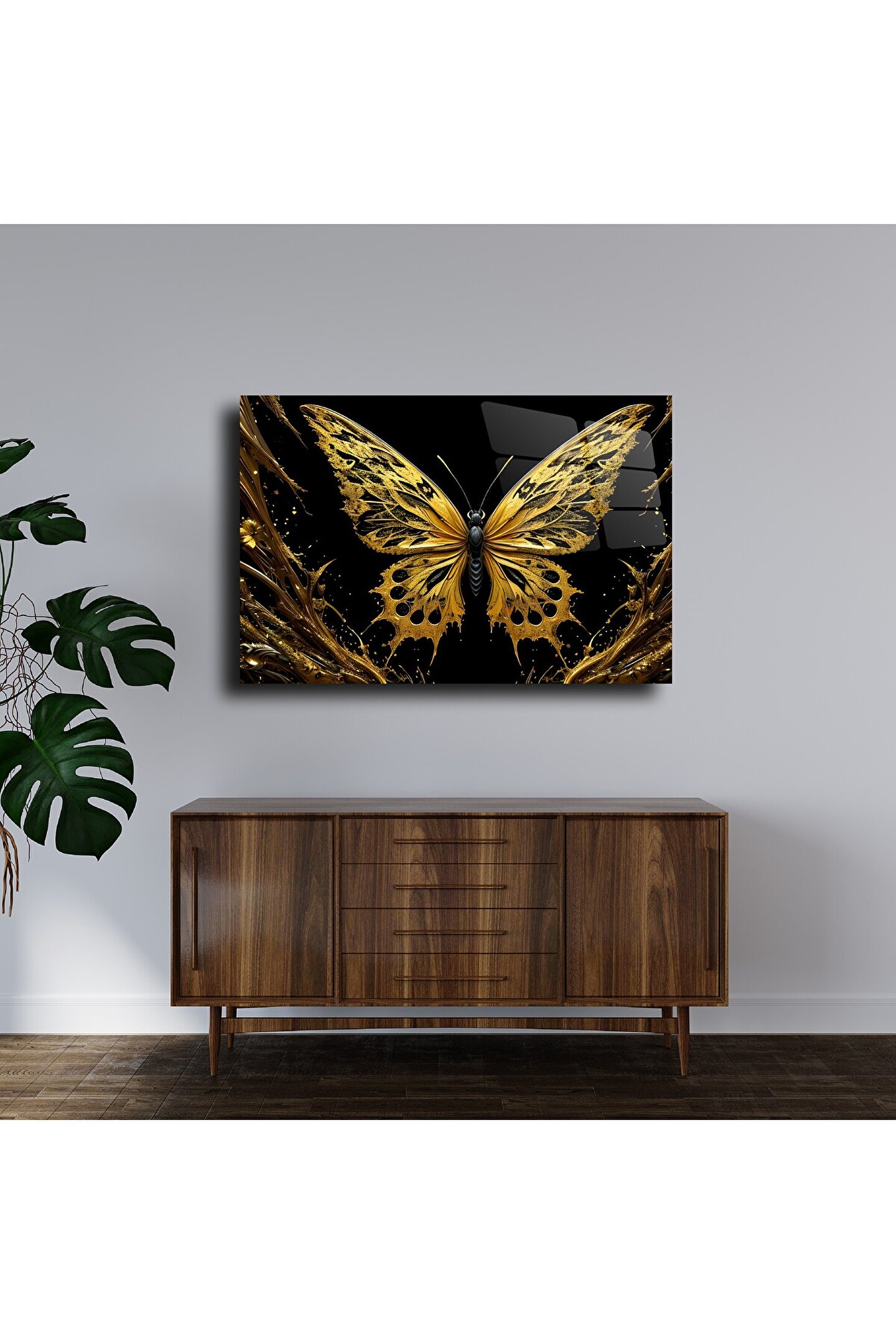 LEYLASER Gold Kelebek Cam Tablo Duvar Dekoru 2