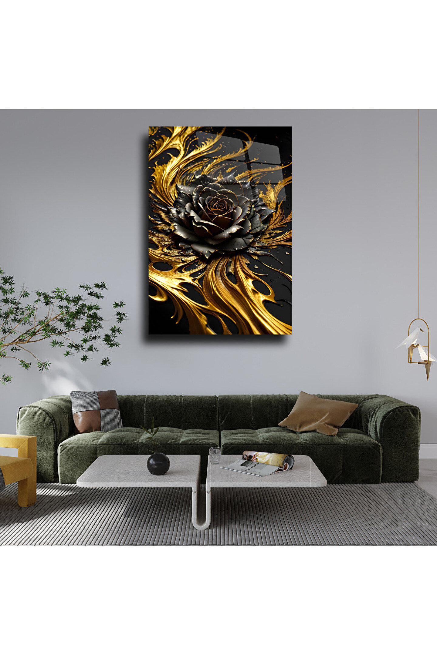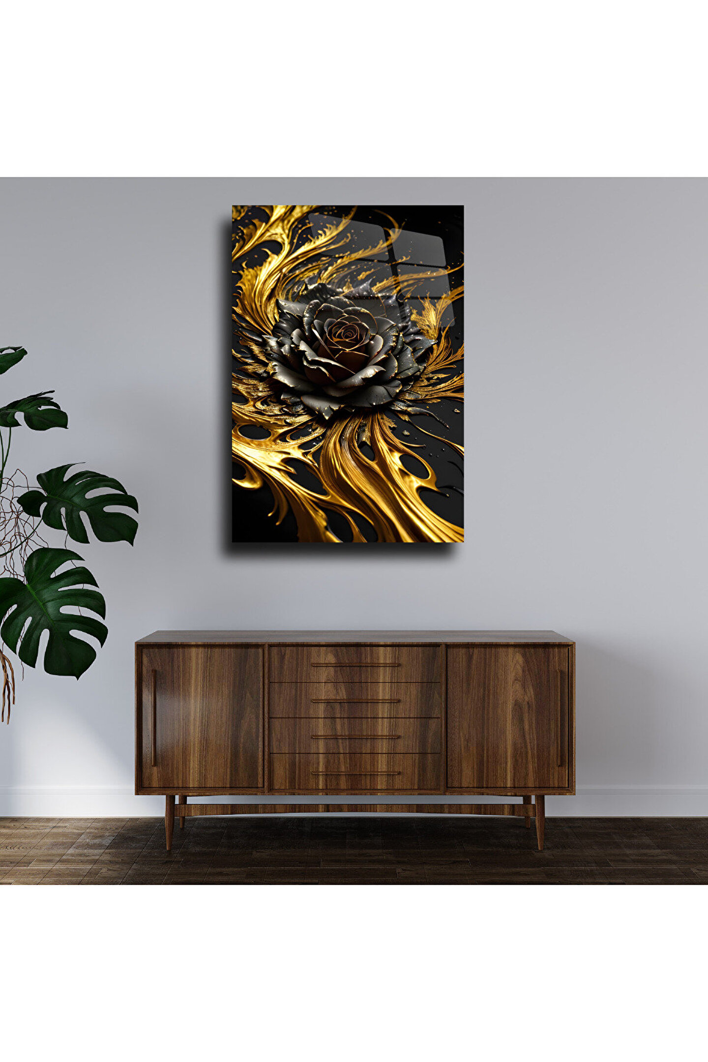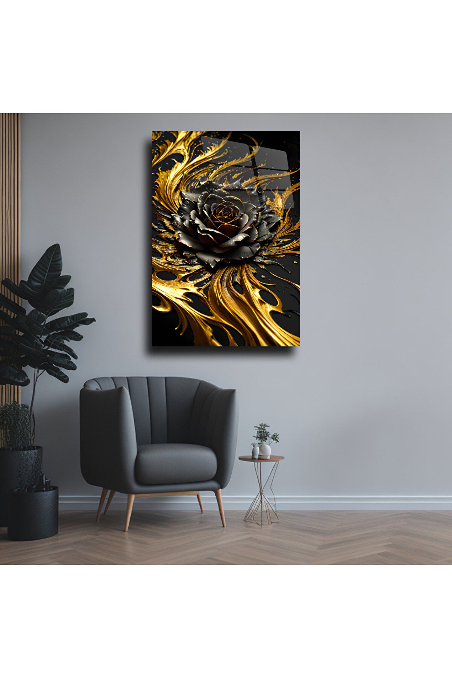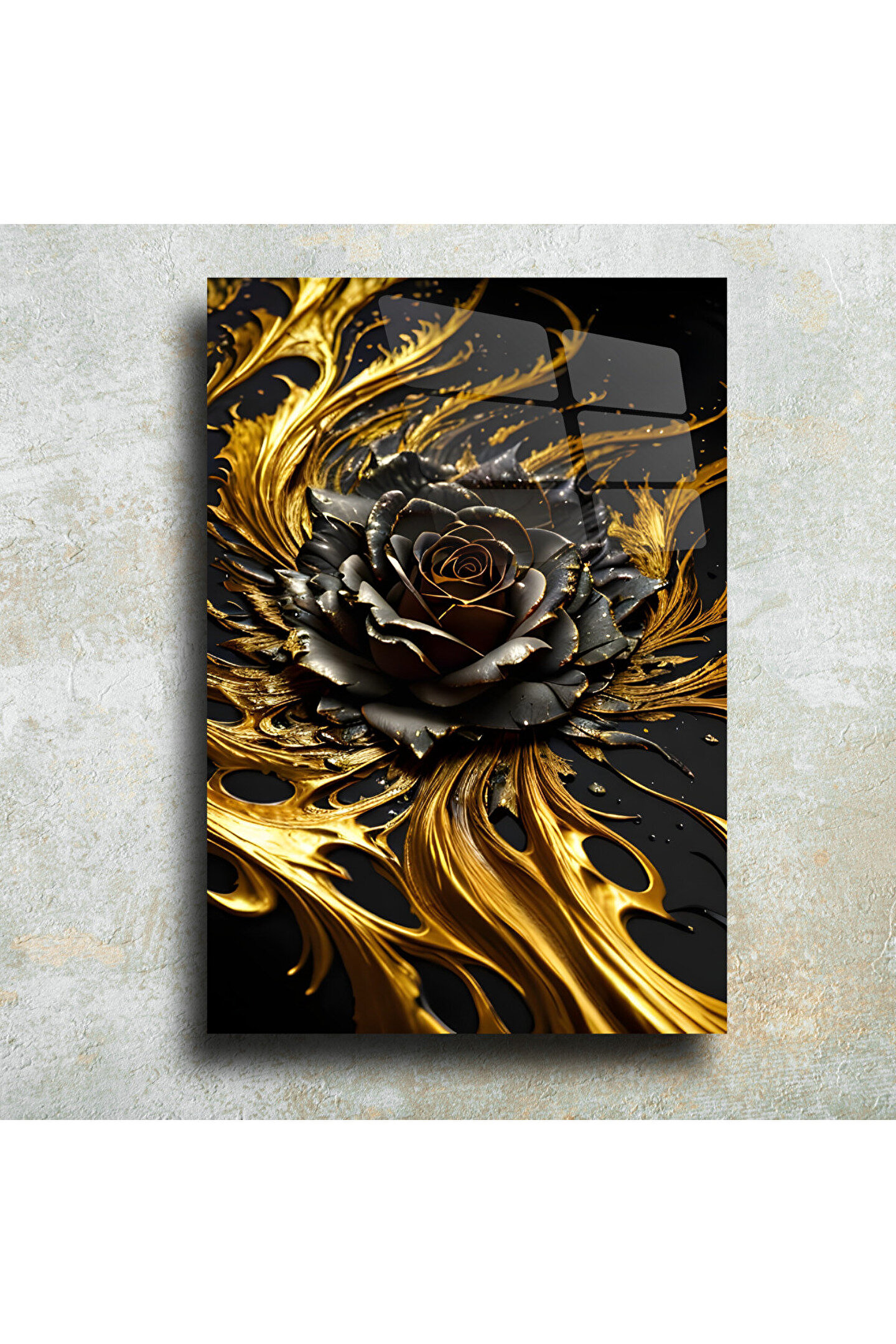 LEYLASER Gold Renkli Gül Cam Tablo Duvar Dekoru 2