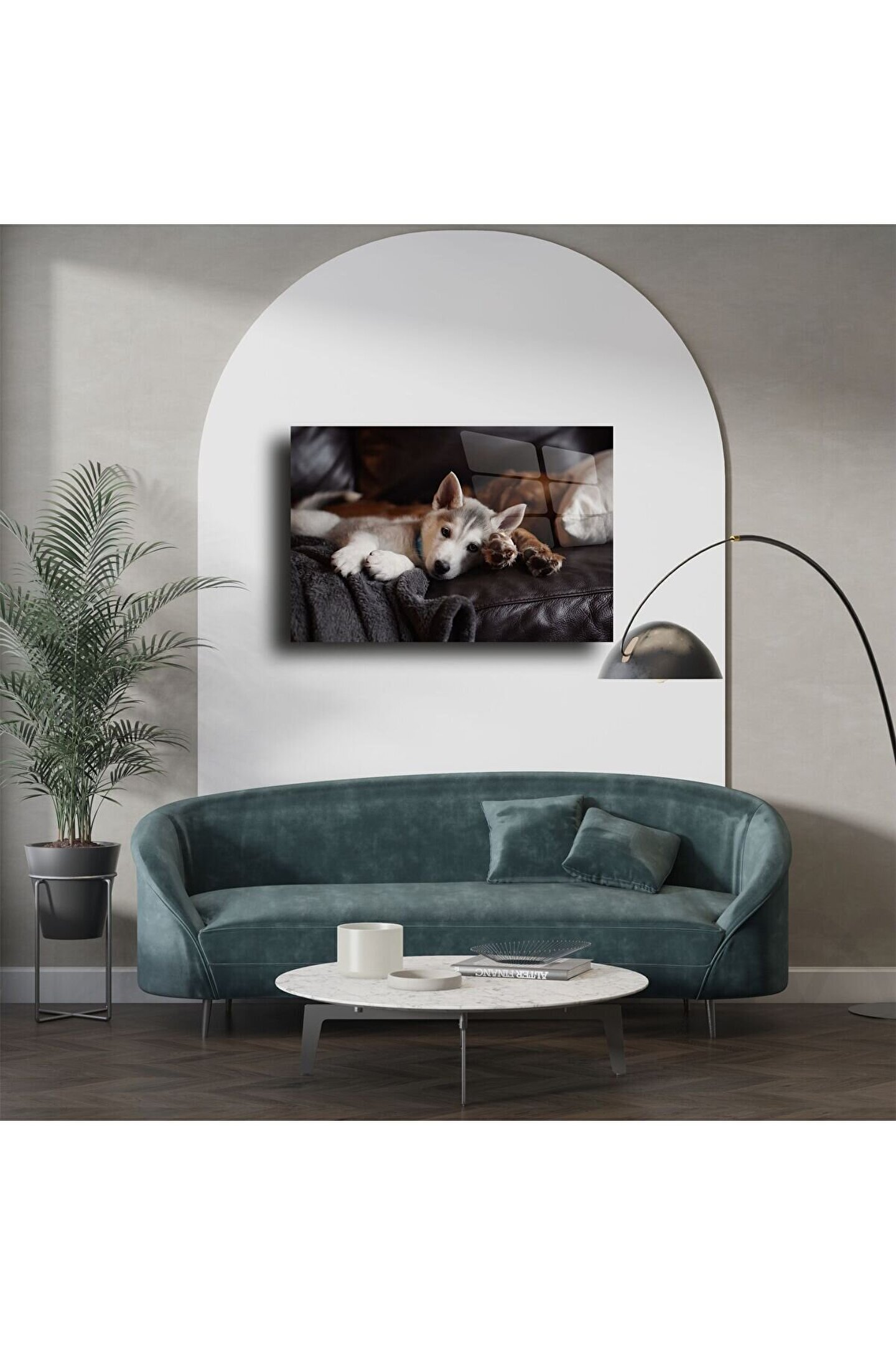 Yumuşak gri koltukta huzurla uzanmış sevimli bir husky yavrusu... Bu etkileyici fotoğraf, hayvan severlerin kalbini anında ısıtacak! Köpeğin tatlı bakışları ve zarif kompozisyonu, her ortamda iç huzur ve sıcaklık yaratır.