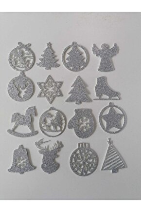 LEYLASER Gümüş Eva Yılbaşı Ağacı Süsü 7,5x7,5 cm 16 Lı