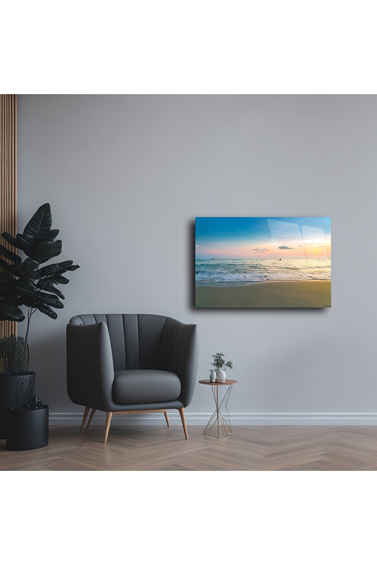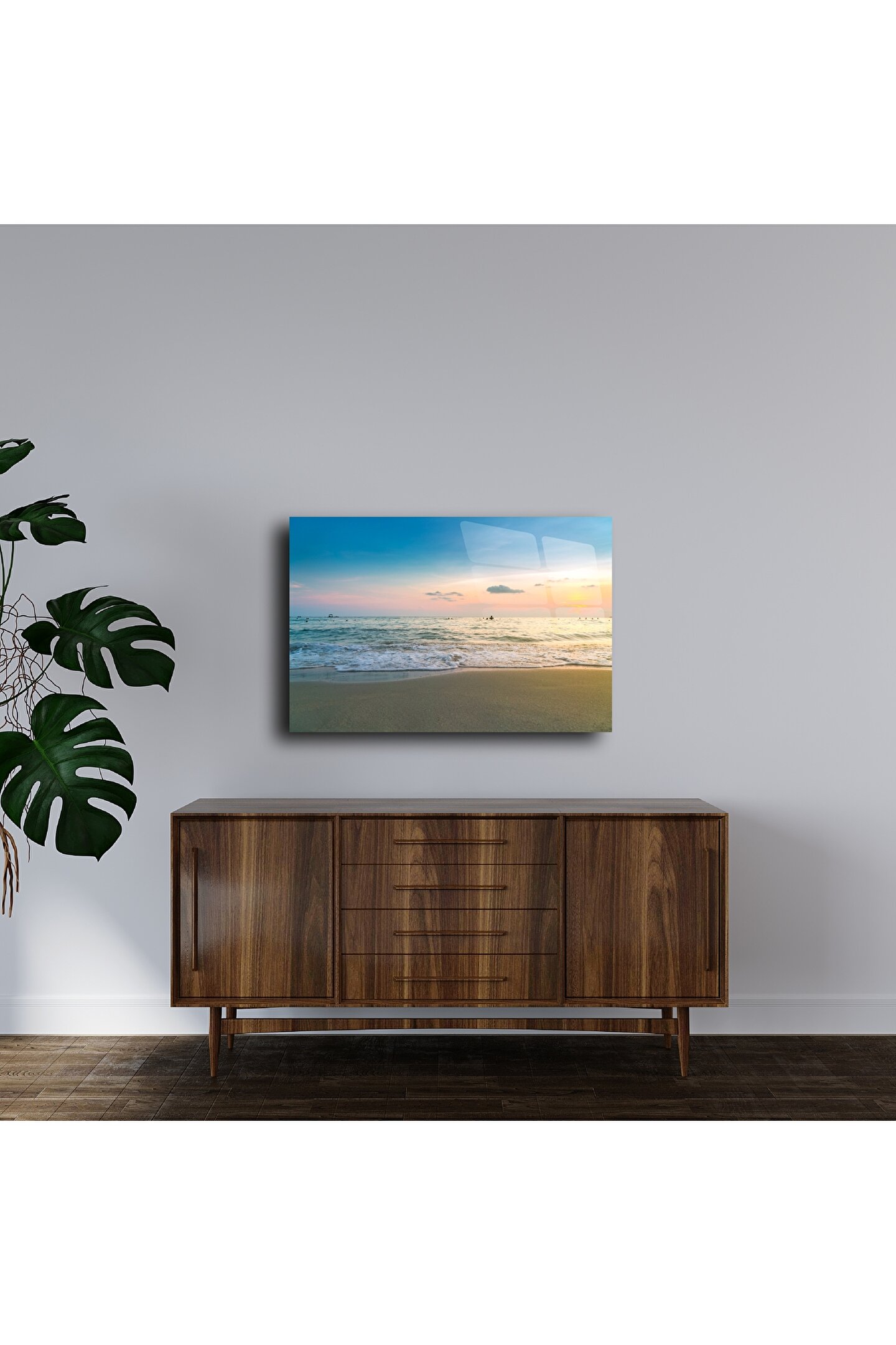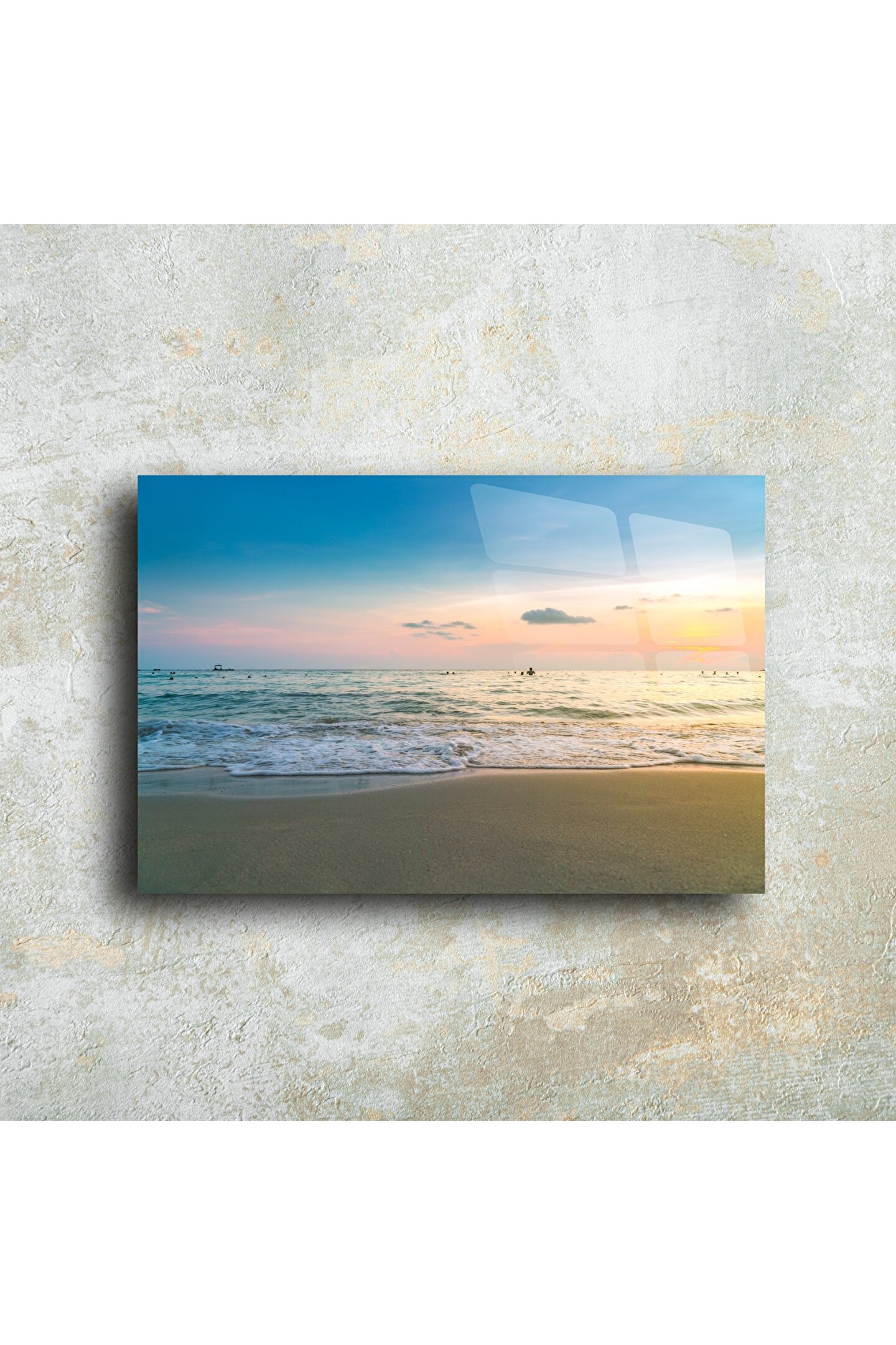 Gün batımının huzur veren renkleriyle bütünleşen bu yüksek çözünürlüklü cam tablo, sahil manzarasının zarafetini yaşam alanınıza taşır. Şeffaf cam yüzeyi, denizin dalgalarını ve gökyüzünün pastel tonlarını büyüleyici bir derinlikle yansıtır. Bu modern sahil cam tablosu, evinizde sakinlik ve ferahlık hissi uyandırır – tıpkı gün batımında kıyıda yürüyormuş gibi.