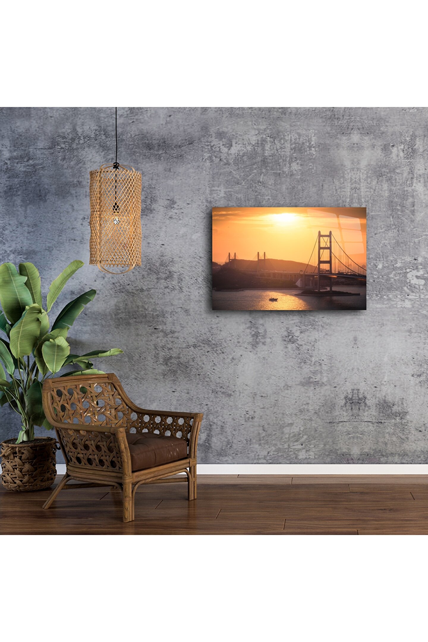Bu büyüleyici cam tablo, İstanbul’un ikonik köprüsünü altın tonlarında günbatımı fonuyla yakalıyor. Gerçek cam üzerine yüksek çözünürlüklü baskı, manzaraya derinlik ve ışık oyunları kazandırırken, her bakışta huzur ve zarafet duygusu uyandırır. Oturma odanızda, ofisinizde veya giriş alanınızda zamansız bir atmosfer yaratmak için mükemmel bir parça.
