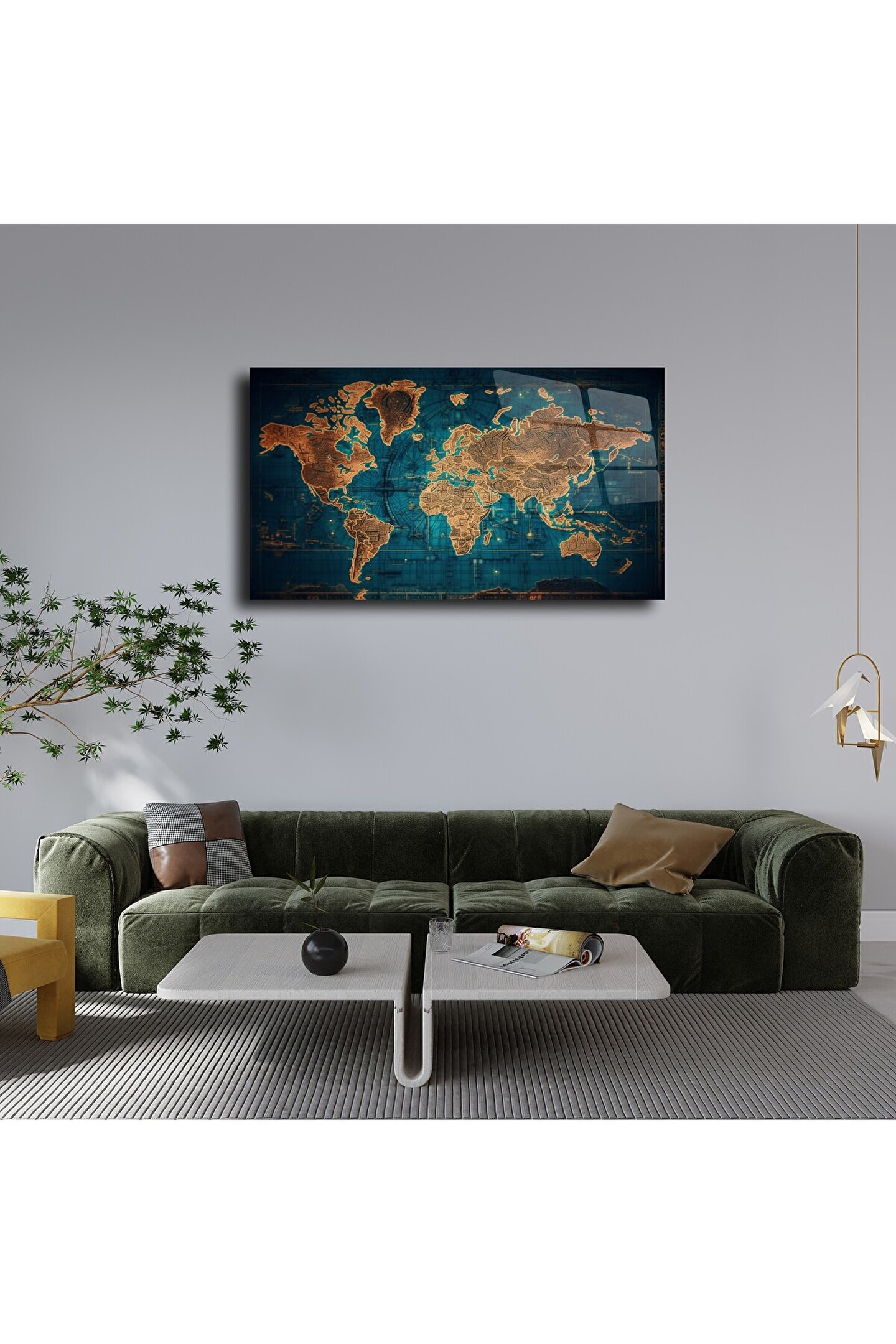 LEYLASER Harita Görseli Cam Tablo Duvar Dekoru 5