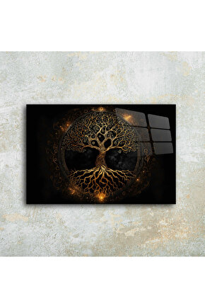 LEYLASER Hayat Ağacı Görseli Cam Tablo Duvar Dekoru 1