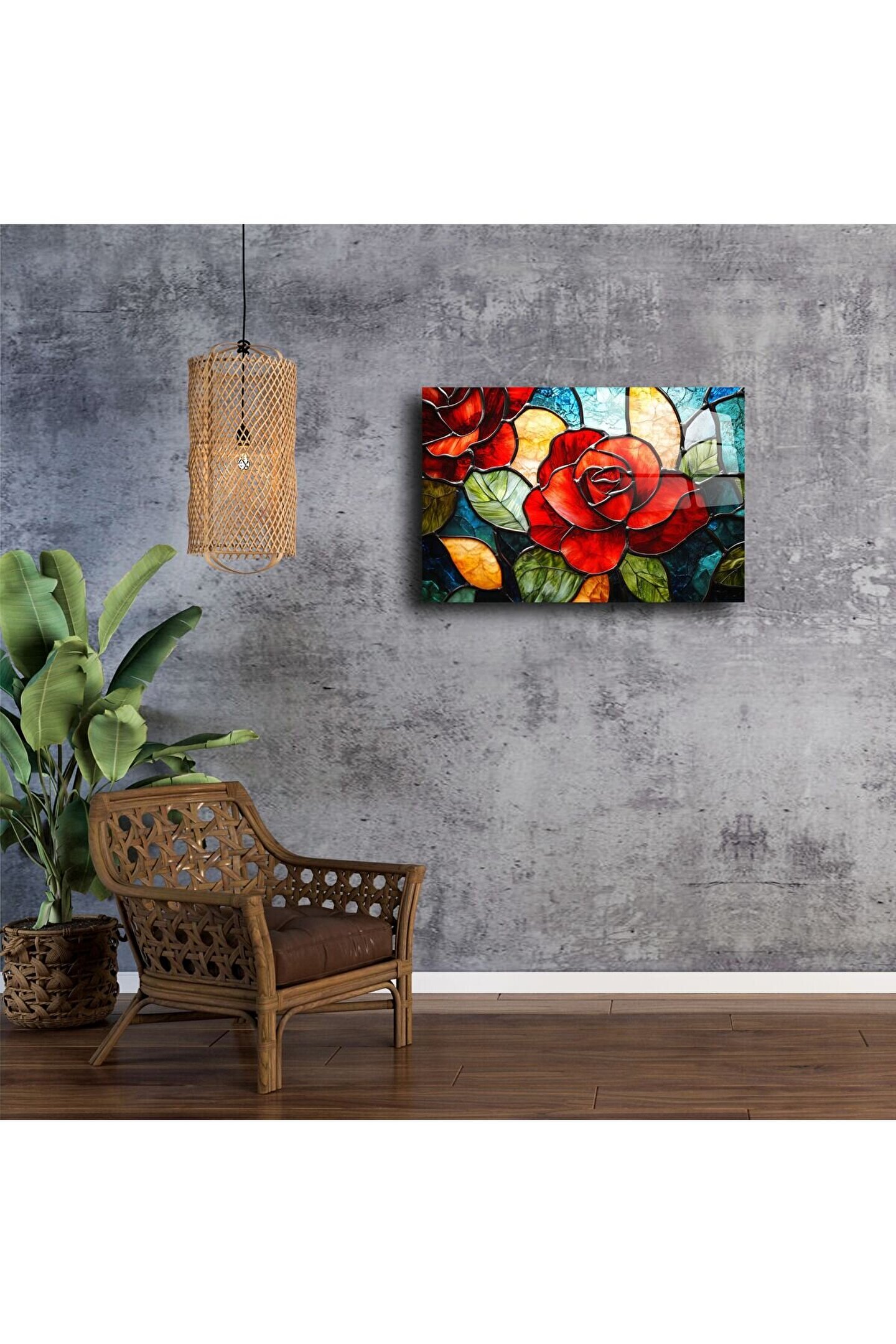 Tutkulu kırmızı güllerin vitray estetiğiyle birleştiği bu ikili cam tablo, aşkı ve zarafeti yaşam alanınıza taşıyor. Cam mozaik tekniğiyle hazırlanmış bu detaylı sanat eseri, ışıkla dans eden renkleriyle duvarınıza büyüleyici bir dokunuş katıyor.