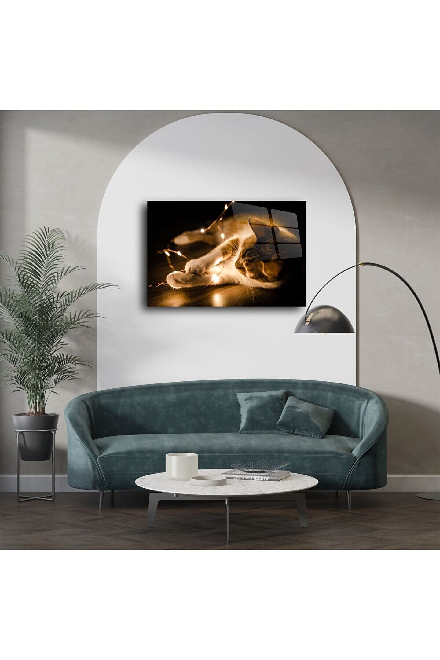 Bu ışıklarla oynayan kedi temalı cam tablo, gecenin sıcaklığı ve sevimliliğiyle buluştuğu anı yakalıyor. Parlak LED ışıkların kedinin tüylerinde yumuşak şekilde yansıdığı bu sahne, yüksek kaliteli temperli camüzerine yüksek çözünürlüklü ve canlı baskıyla sunulmuştur.