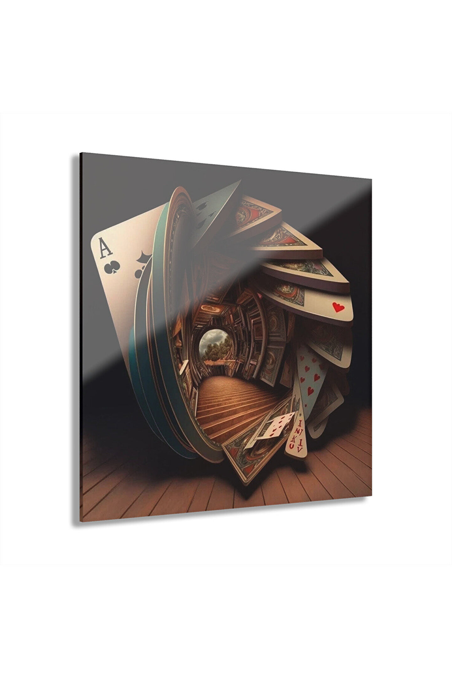 LEYLASER İskambil Kağıtları Cam Tablo Duvar Dekoru