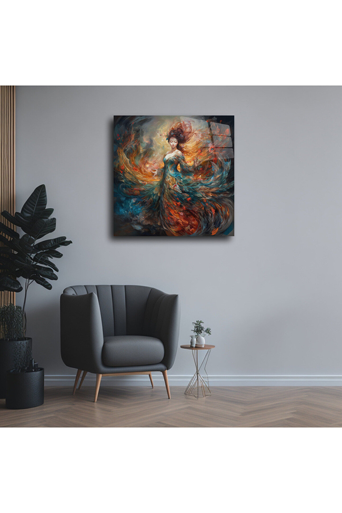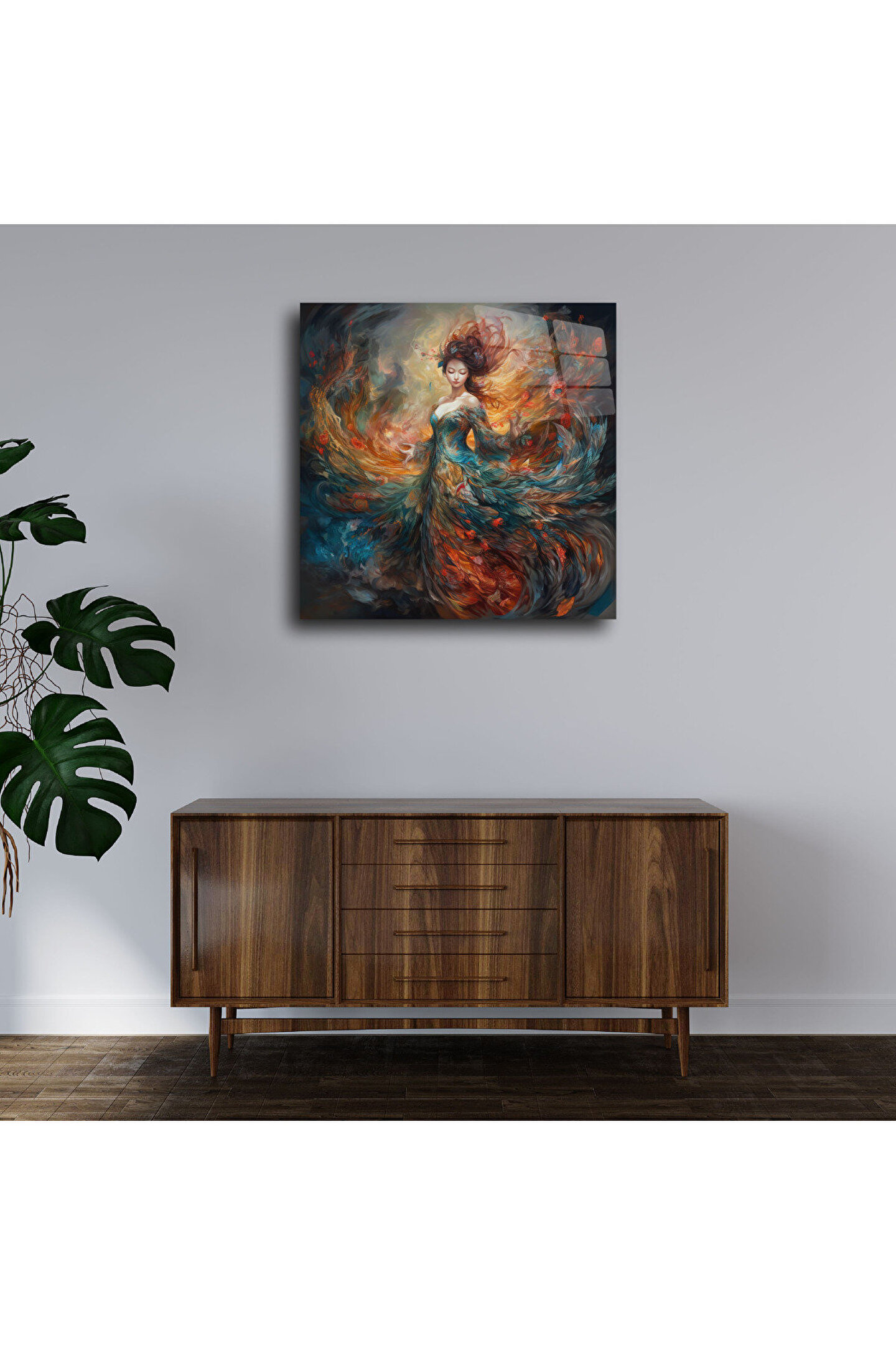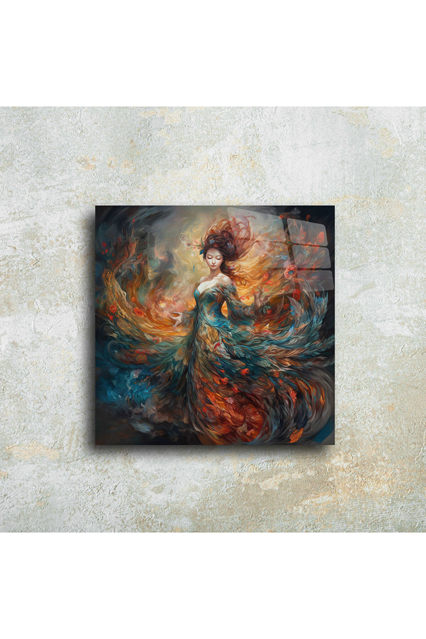 LEYLASER Kadın Melek Cam Tablo Duvar Dekoru