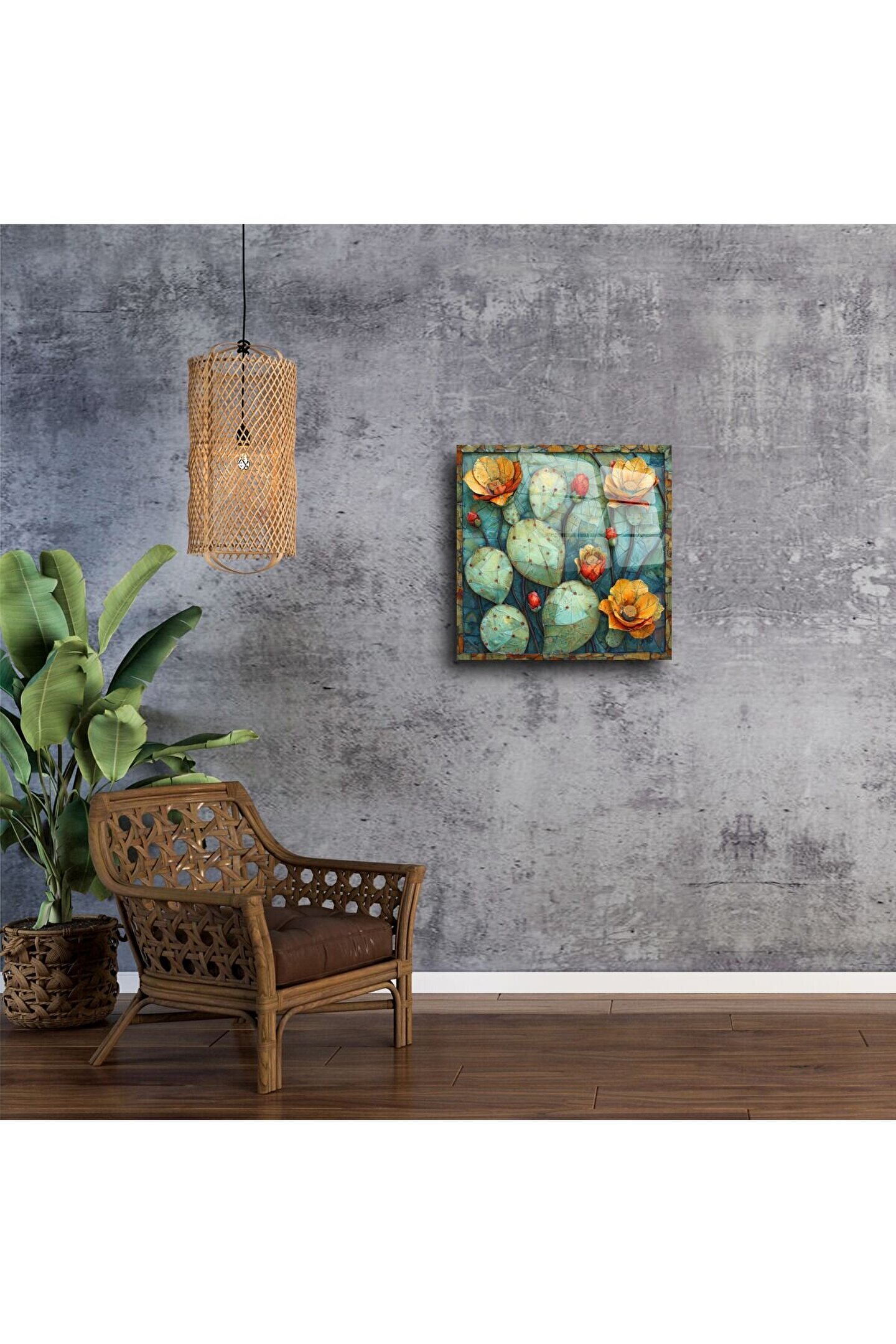 Doğanın doğal formlarından ilham alan bu kaktüs desenli cam tablo, yaşam alanlarınıza modern ve bohem bir ruh katıyor. Özenle yerleştirilmiş yeşil tonlarındaki yapraklar ve sıcak tonlarda açan çiçekler, dikkat çekici bir vitray etkisi yaratıyor.