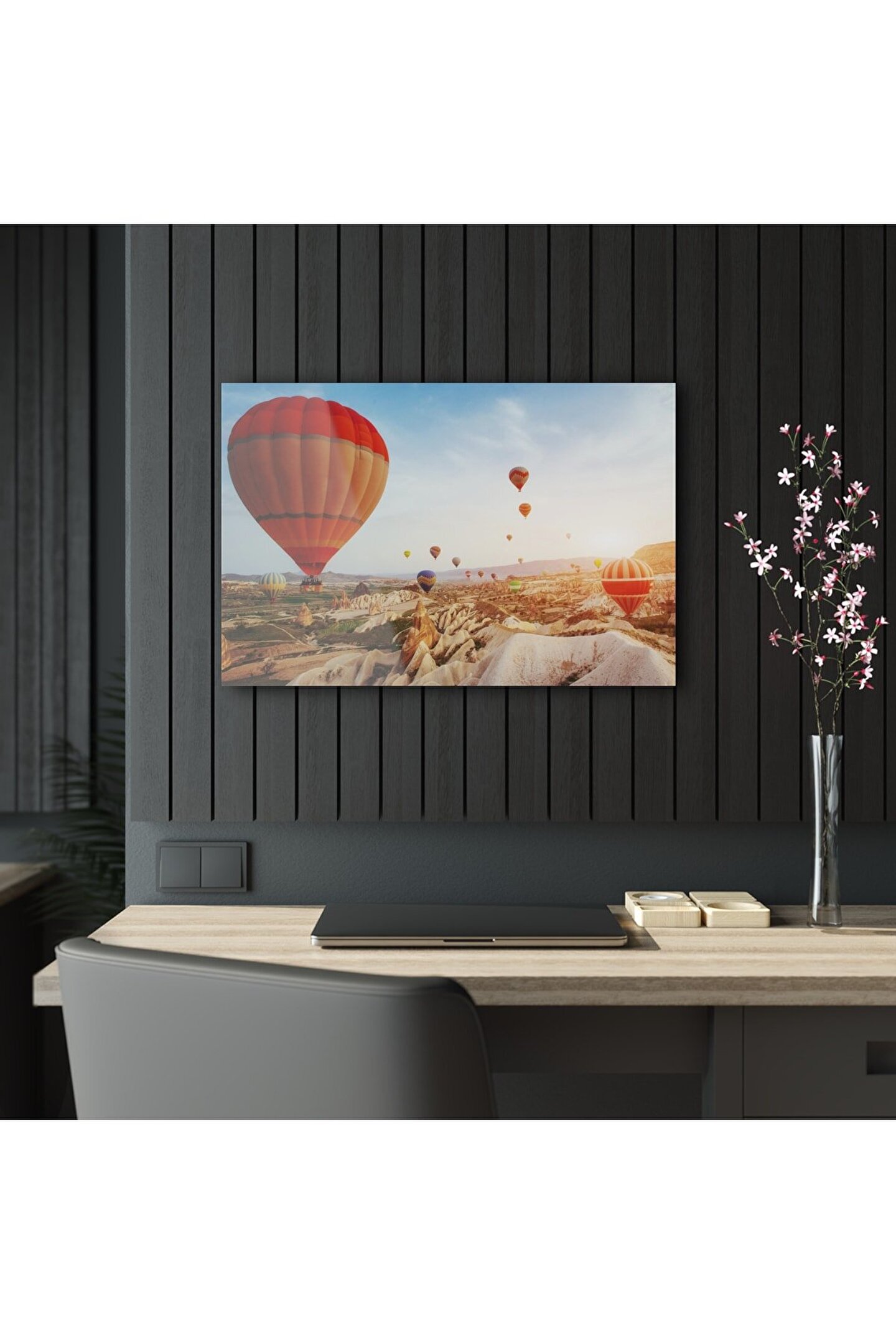 LEYLASER Kapadokya Balonlar Cam Tablo Duvar Dekoru