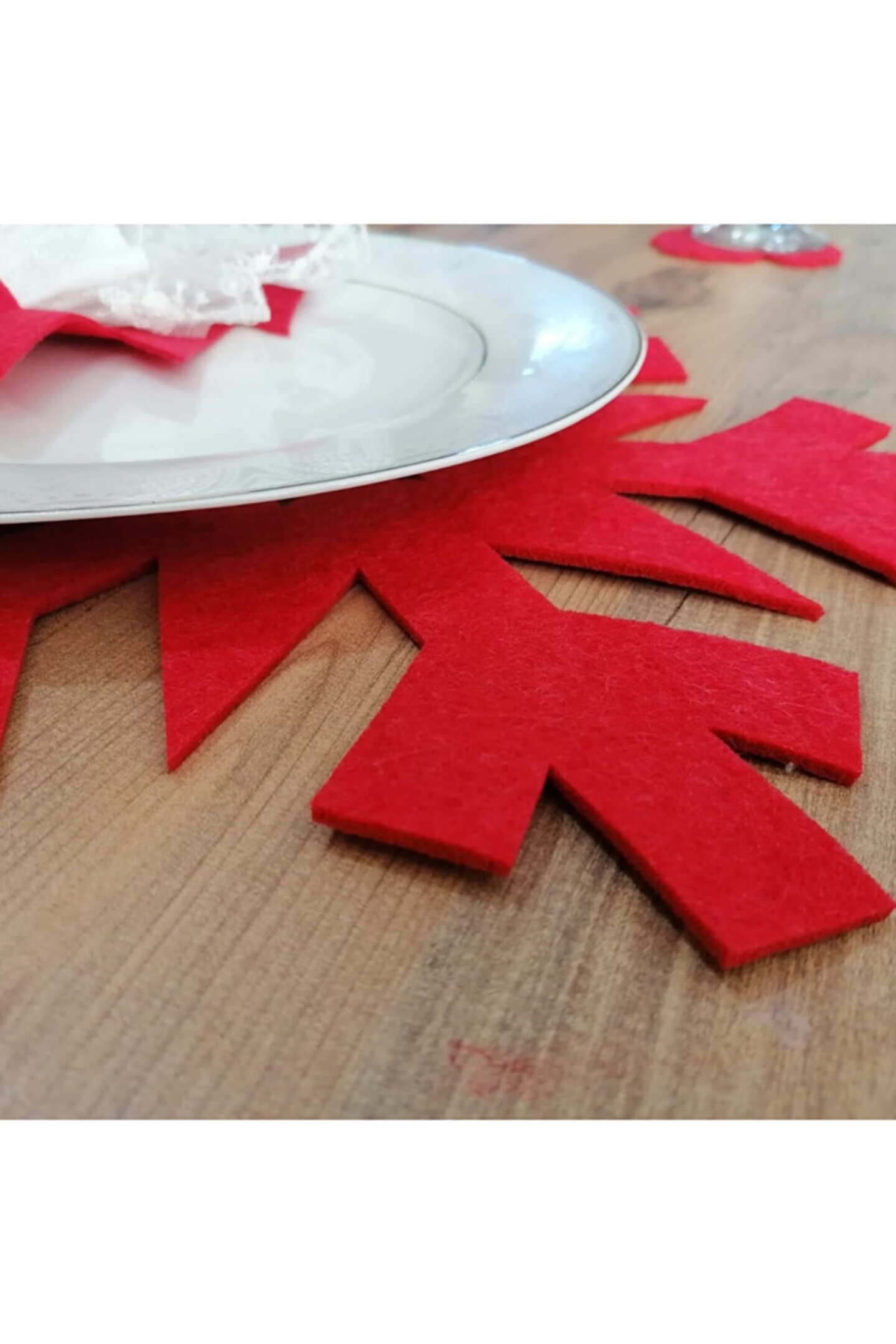 Yılbaşı ruhunu sofralarınıza taşıyacak kırmızı keçe yuvarlak amerikan servisleriyle misafirlerinizle unutulmaz anlar yaşayın.; Her biri 35 x 35 cm ebatlarında olan bu iki adet yuvarlak amerikan servisi, sofralarınıza şık ve sıcak bir dokunuş katar.; Kaliteli keçe materyali sayesinde dayanıklı ve uzun ömürlü kullanım sunarken, kolay temizlenebilir yapısıyla pratiklik sağlar.; Yılbaşı temalı tasarımıyla sofra düzeninize renk katıp, özel günlerinizde misafirlerinize hoş bir sürpriz yapabilirsiniz.;