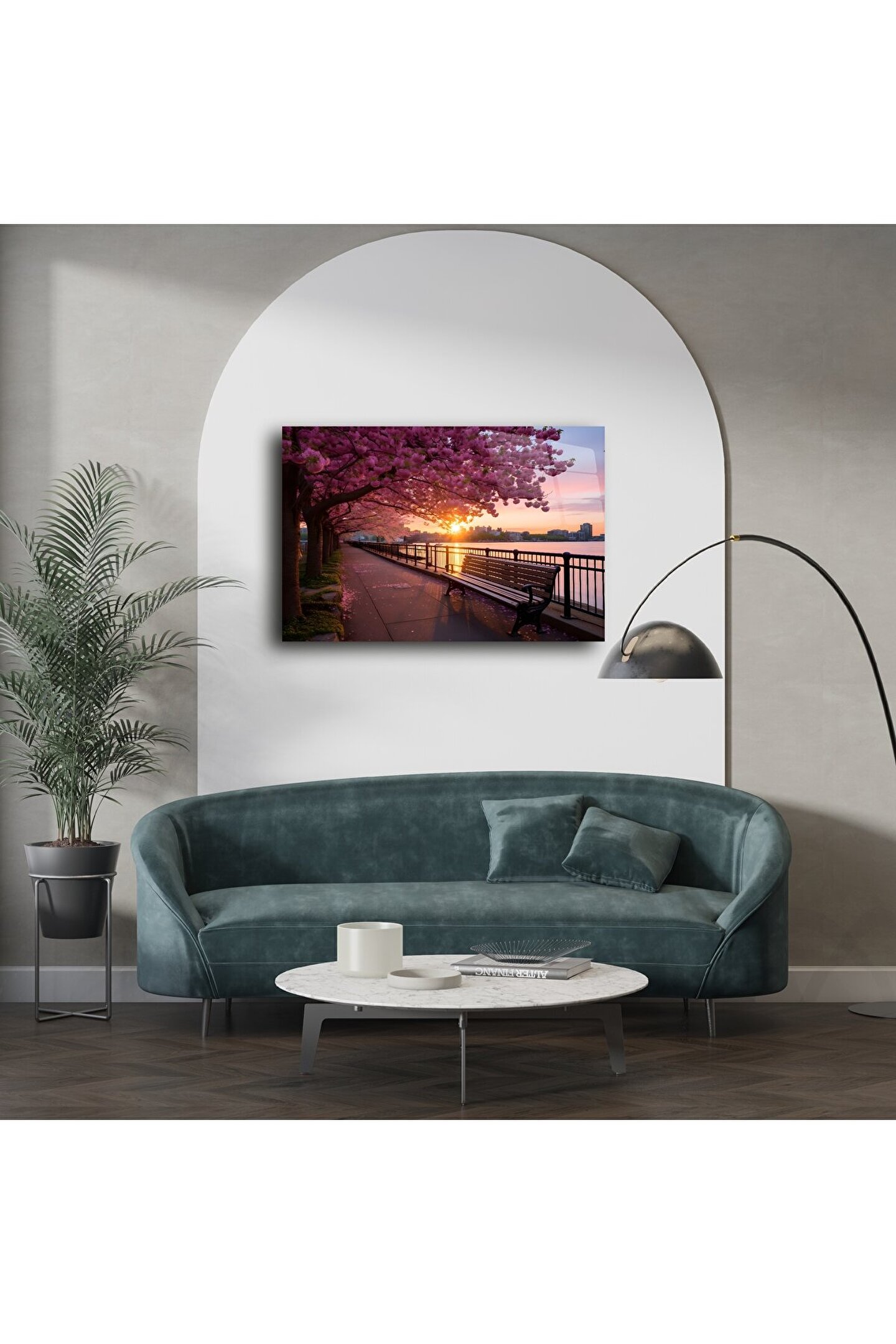 Bu etkileyici kiraz çiçeği gün batımı park bankı kanvas tablosu ile yaşam alanınıza huzur, renk ve dinginlik katın. Sakura ağaçlarının yumuşak pembe tonları, gün batımında sakin bir sahil yolunu süslerken; bu sahne, müze kalitesinde bir baskı ile ölümsüzleştirildi.