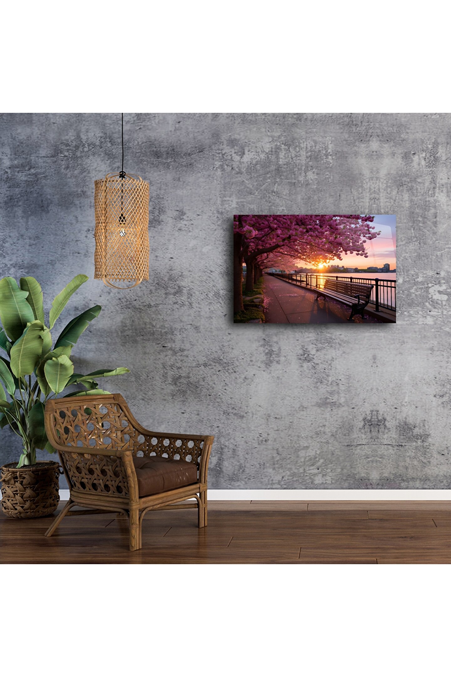 • Bu etkileyici kiraz çiçeği gün batımı park bankı kanvas tablosu ile yaşam alanınıza huzur, renk ve dinginlik katın. Sakura ağaçlarının yumuşak pembe tonları, gün batımında sakin bir sahil yolunu süslerken; bu sahne, müze kalitesinde bir baskı ile ölümsüzleştirildi.