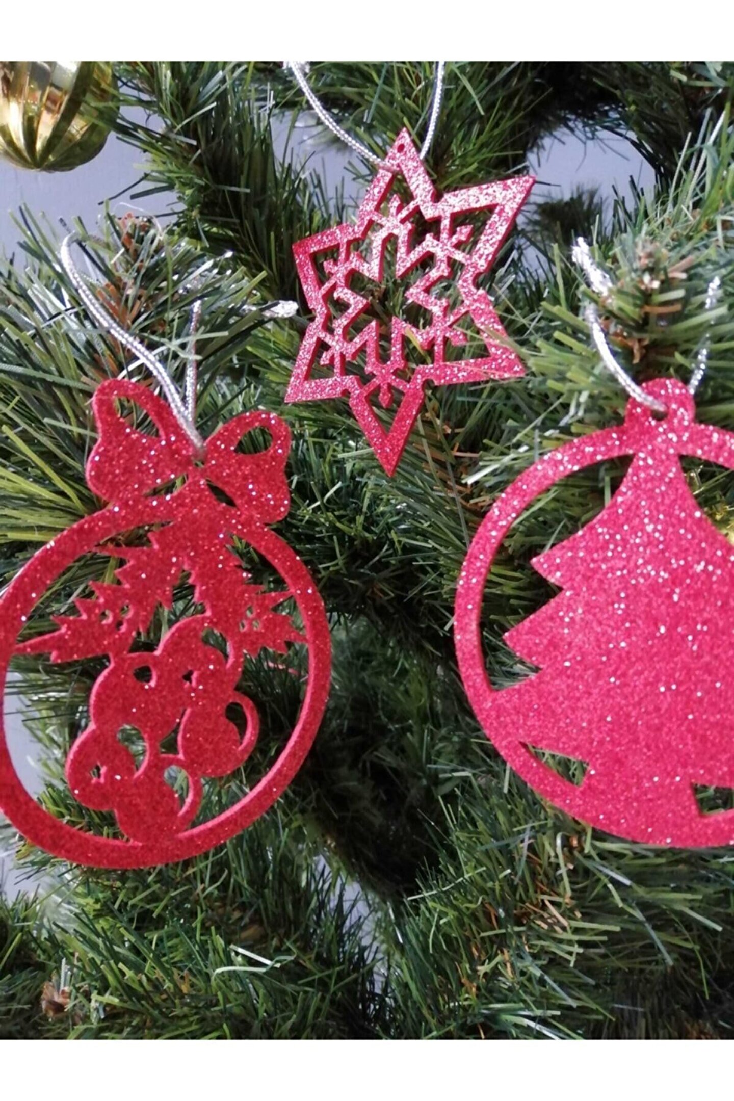 LEYLASER Kırmızı Eva Yılbaşı Ağacı Süsü 7,5x7,5 Cm 28li