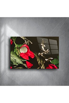 Doğanın zarafetini evinize taşıyan bu cam tablo, kırmızı gelincik çiçekleri ve yeşil yaprakların sanatsal birleşimiyle sakinlik ve şıklığı bir araya getiriyor. Parlak cam yüzey üzerine yapılan detaylı baskı, çiçekleri adeta canlıymış gibi yansıtarak duvarınıza hayat katar.