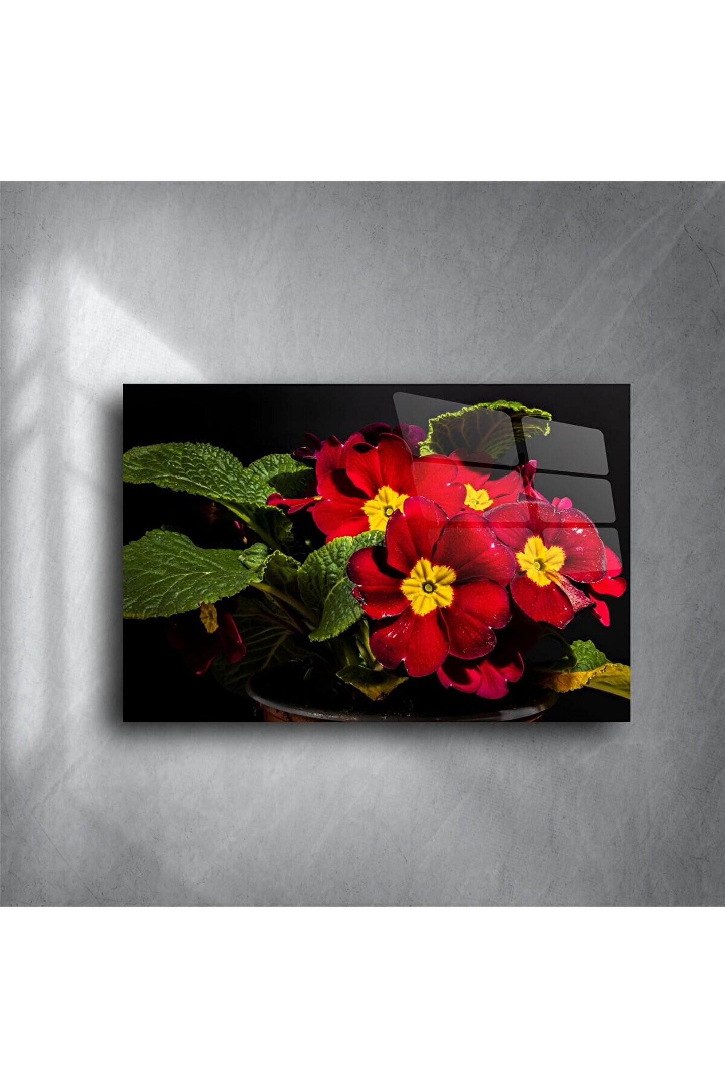 LEYLASER Kırmızı Primula Çiçekli Cam Tablo