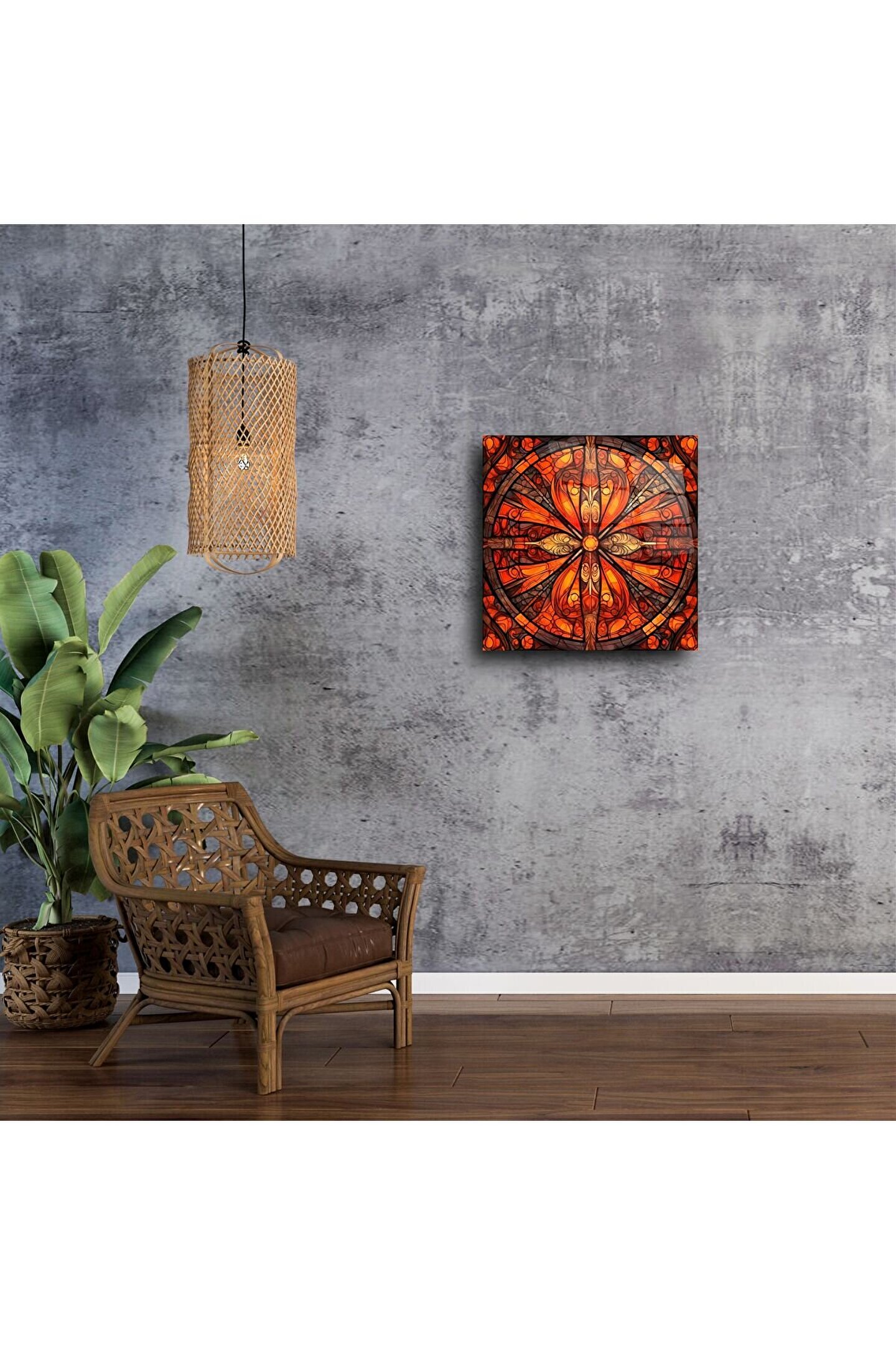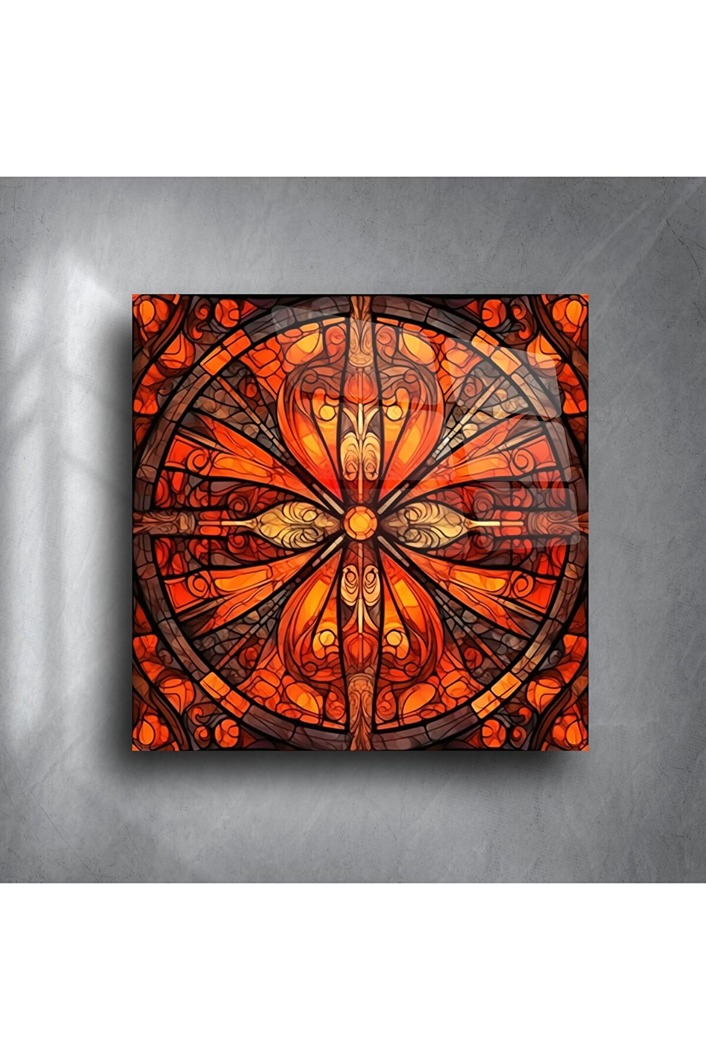 Bu Kutsal Gül Cam Duvar Sanatı ile alanınızı dönüştürün; kehribar ve yakut renklerinde, huzur ve enerjiyi uyandıran mandala desenleriyle ruhunuza dokunun. Her parça, evinize sıcaklık, ışık ve spiritüel anlam katmak üzere el yapımı bir vitray panel olarak özenle hazırlanır.