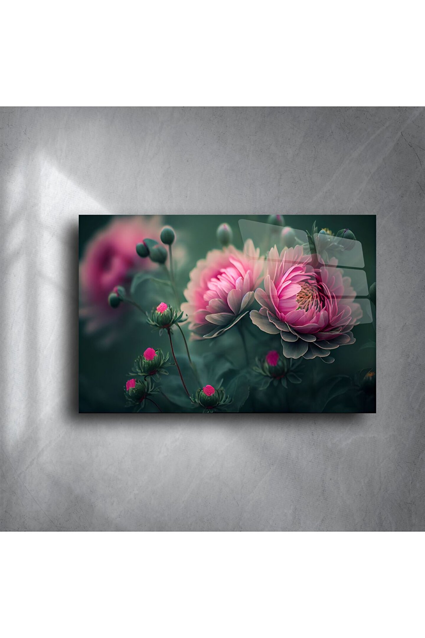 Modern yaşam alanlarınıza romantik bir dokunuş katın! Bu göz alıcı pembe şakayık çiçek deseni, yüksek kaliteli cam yüzeye ultra HD baskı ile işlenmiştir. Derin renk geçişleri ve ışıltılı detayları sayesinde yaşam alanlarınıza zarafet ve doğallık taşır. Cam yüzeyi ışığı yansıtarak derinlik ve canlılık katarken, temizlik açısından da oldukça pratiktir.