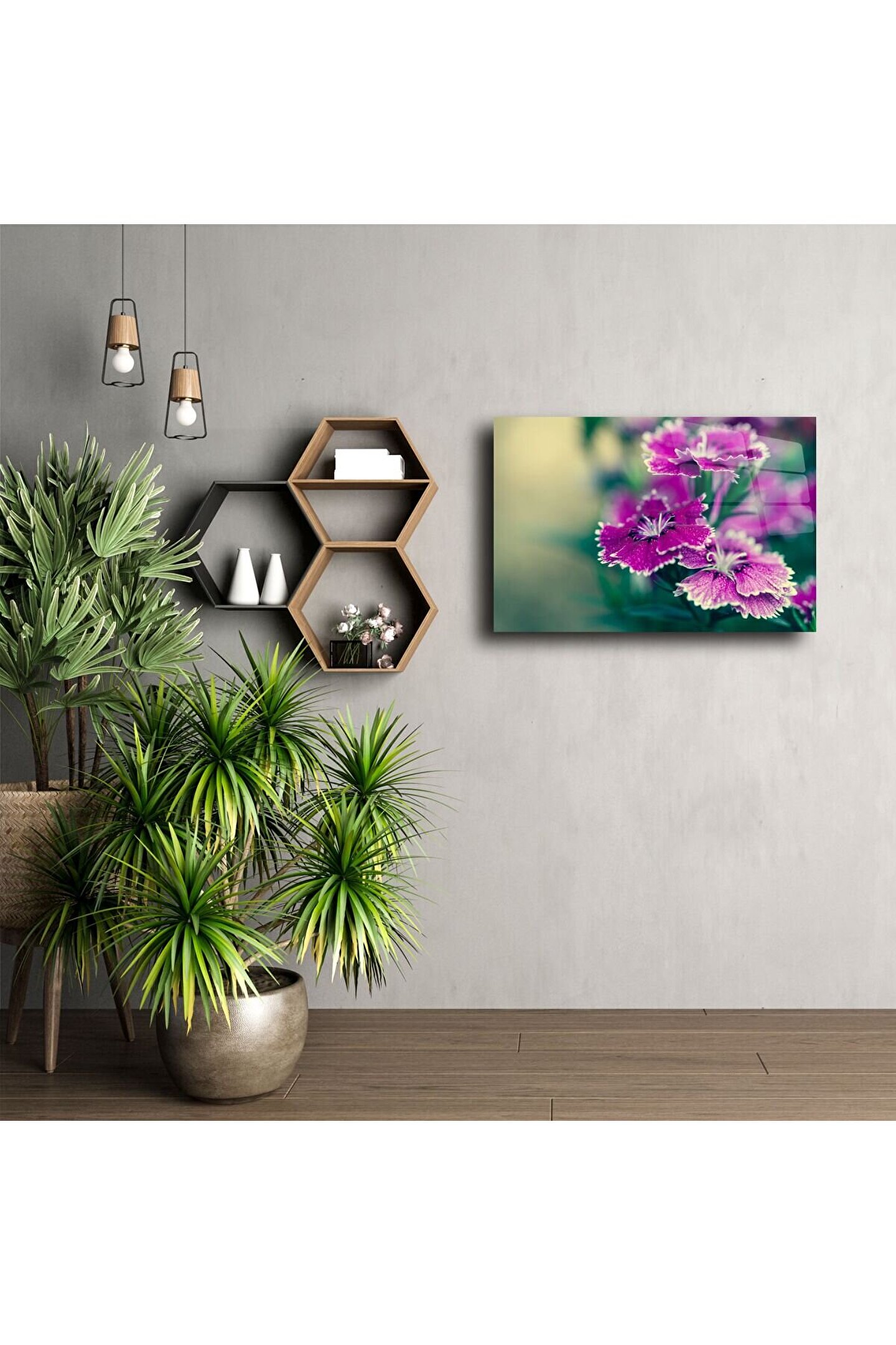 Bu çarpıcı parlak akrilik duvar sanatıyla mekanınıza hayat verin. Makro detaylarla yakalanmış pembe çuha çiçekleri, modern veya doğadan ilham alan dekorlara derinlik ve duygu katar.