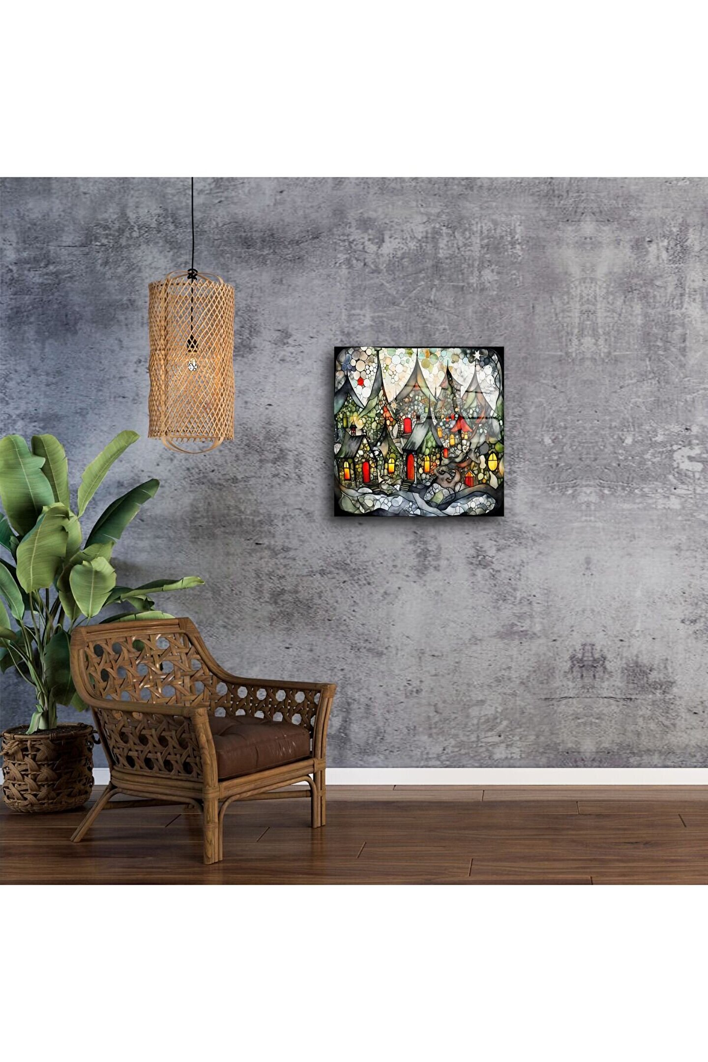 Bembeyaz karlar altında ışıkları yanan bir masal köyünü andıran bu cam tablo, vitray efektiyle kış mevsiminin sıcaklığını evinize getiriyor. Kırmızı kapılar, sarı pencereler ve detaylı çatılarla işlenmiş bu panel, çocukluğunuzdan bir anı gibi hissettiriyor.