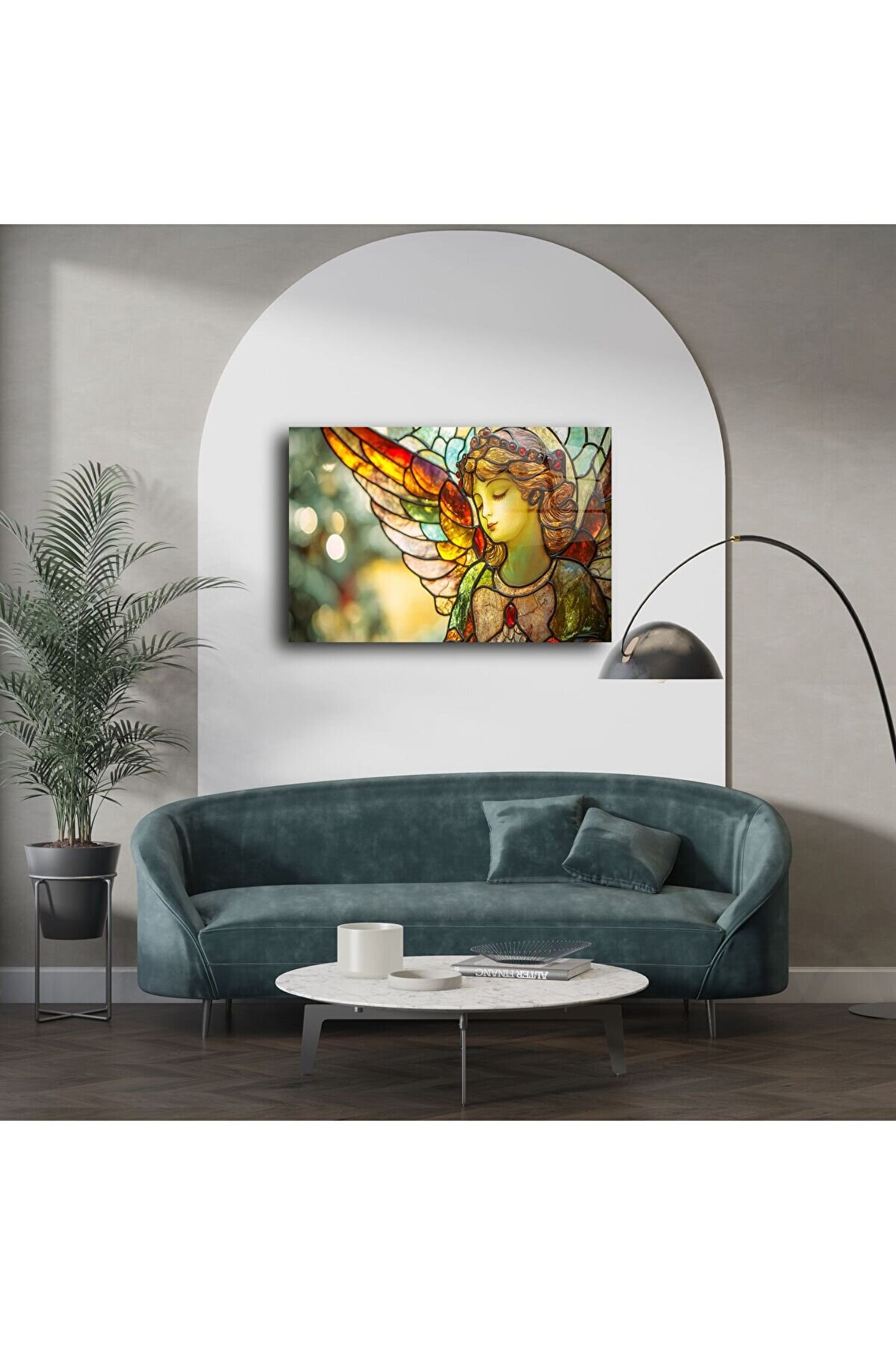 Bu narin melek figürüyle tasarlanmış vitray stil cam tablo, huzur ve zarafet arayan yaşam alanları için eşsiz bir sanatsal dokunuş sunuyor. Pastel tonlar ve cam üzerindeki ışık oyunları, her bakışta içsel bir dinginlik uyandırıyor.
