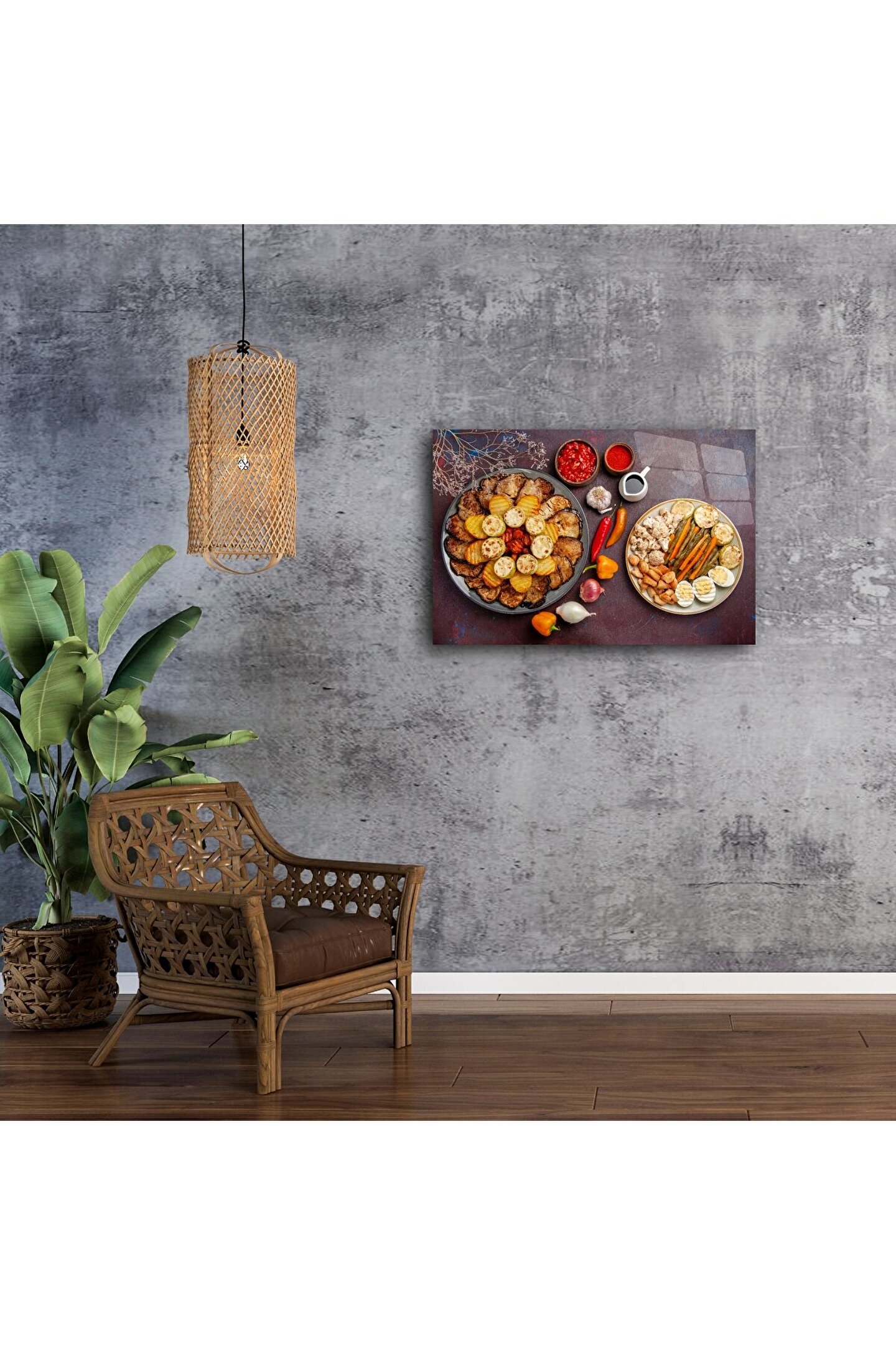 Her detay, iştah kabartan renklerle sanata dönüştü. Sıcacık bir mutfağın ya da gurme restoranın duvarında hayat bulan bu tablo, sohbet başlatan ve alanınıza özgünlük katan bir parçadır.