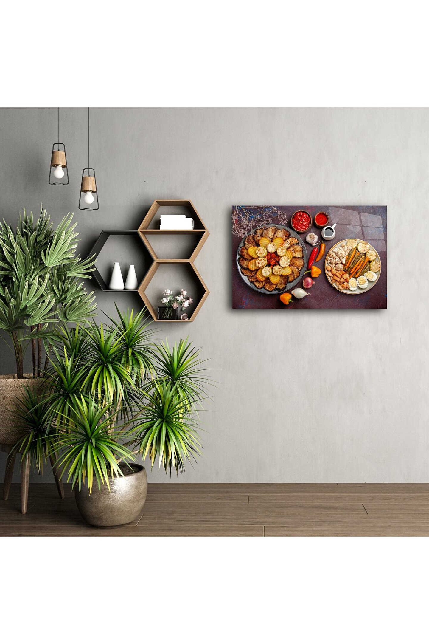 Her detay, iştah kabartan renklerle sanata dönüştü. Sıcacık bir mutfağın ya da gurme restoranın duvarında hayat bulan bu tablo, sohbet başlatan ve alanınıza özgünlük katan bir parçadır.