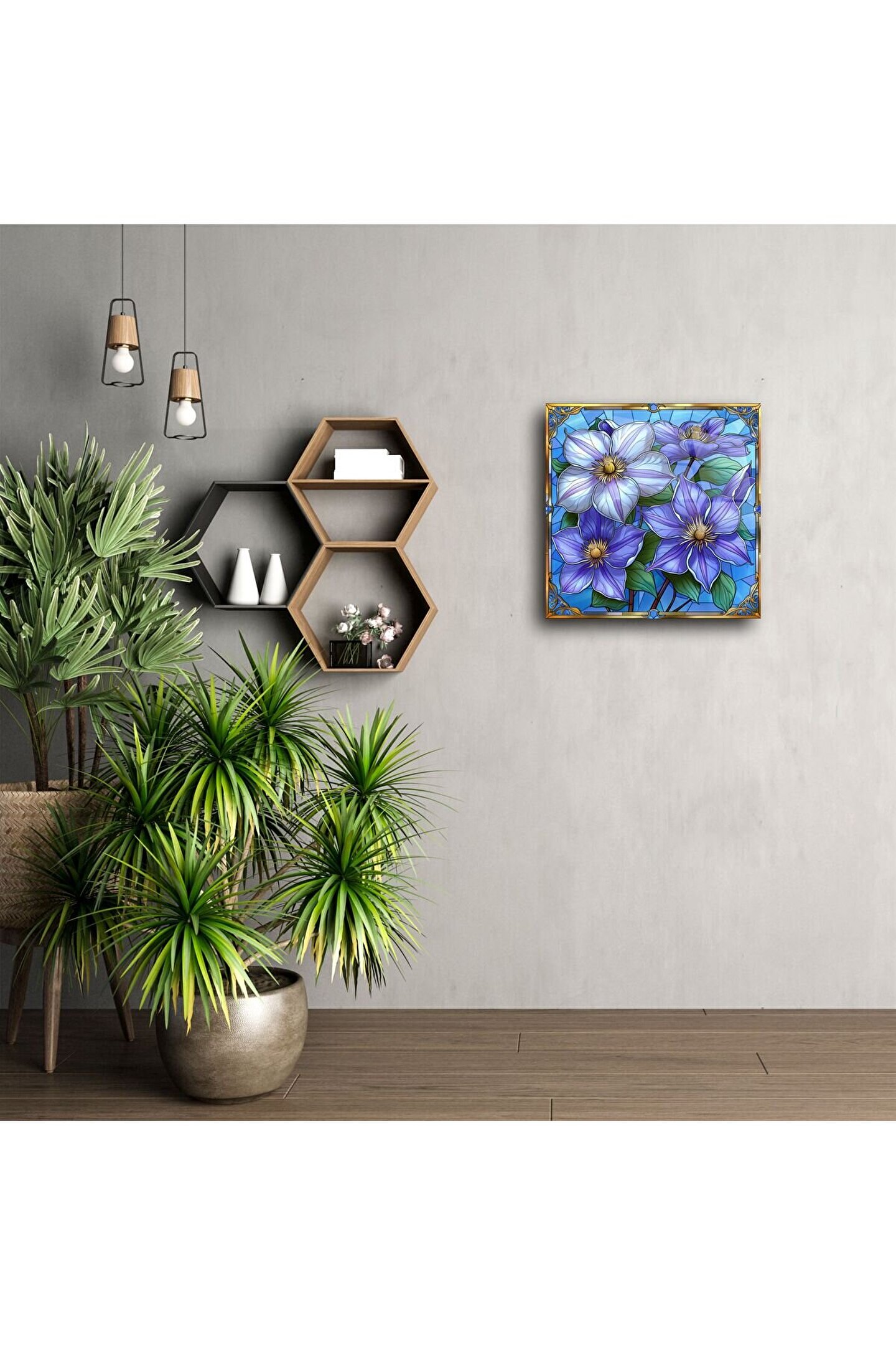 LEYLASER Mor ve Mavi Çiçekli Cam Tablo