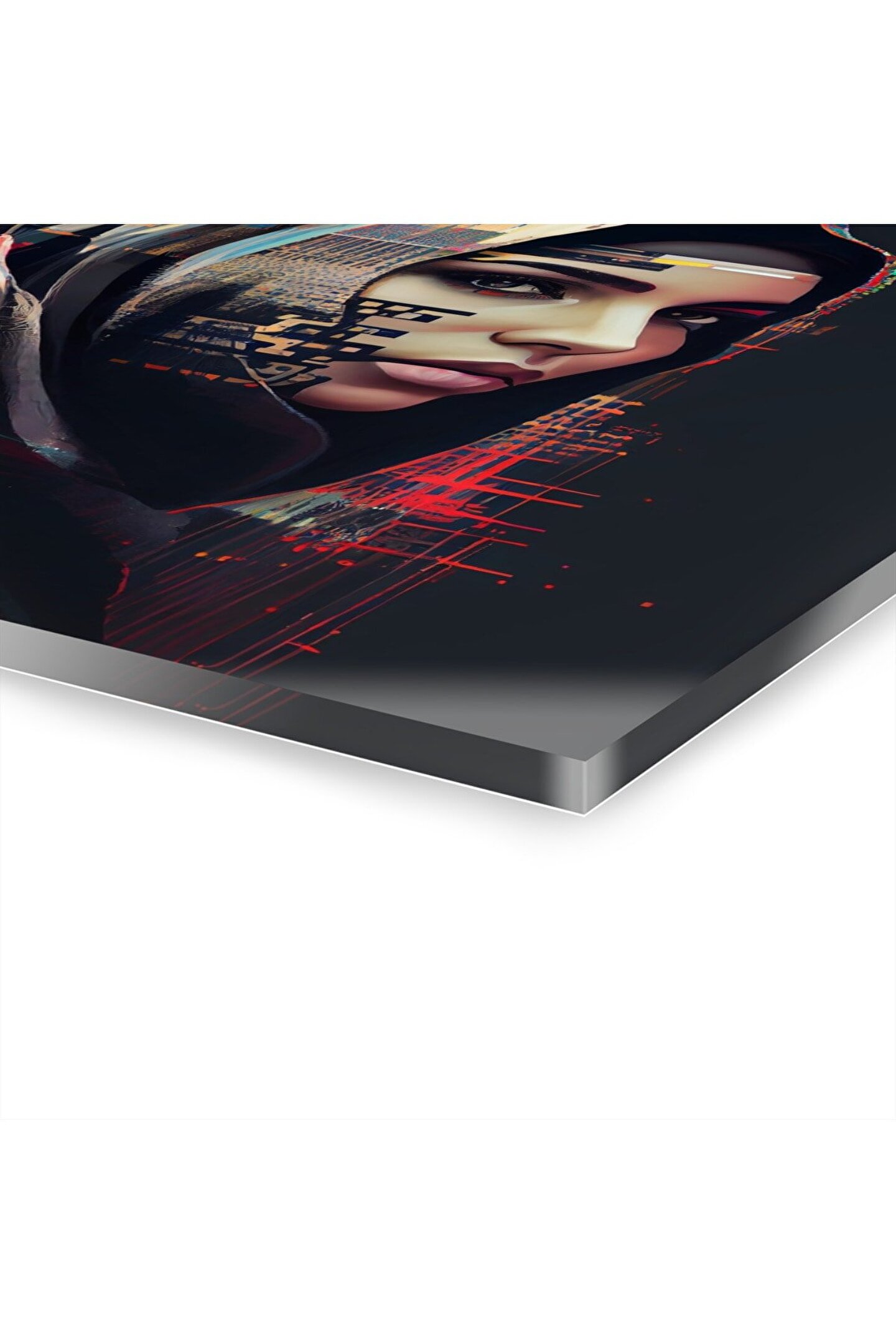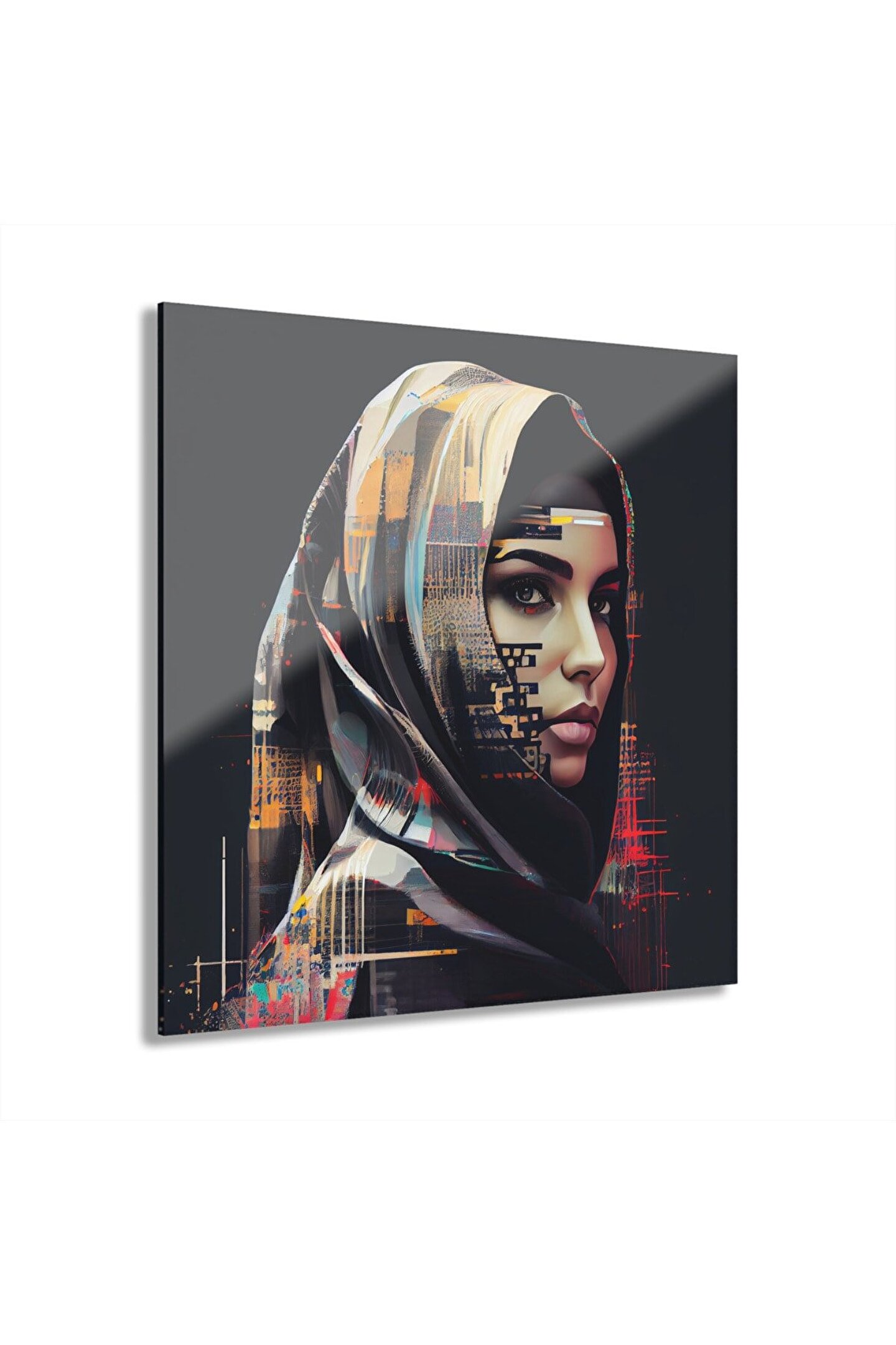 LEYLASER Müslüman Kız Sulu Boya Türban Başörtüsü İslam Cam Tablo Duvar Dekoru 2