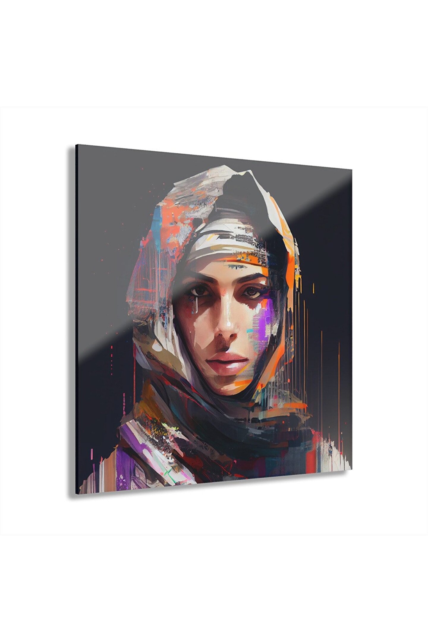 LEYLASER Müslüman Kız Sulu Boya Türban Başörtüsü İslam Cam Tablo Duvar Dekoru