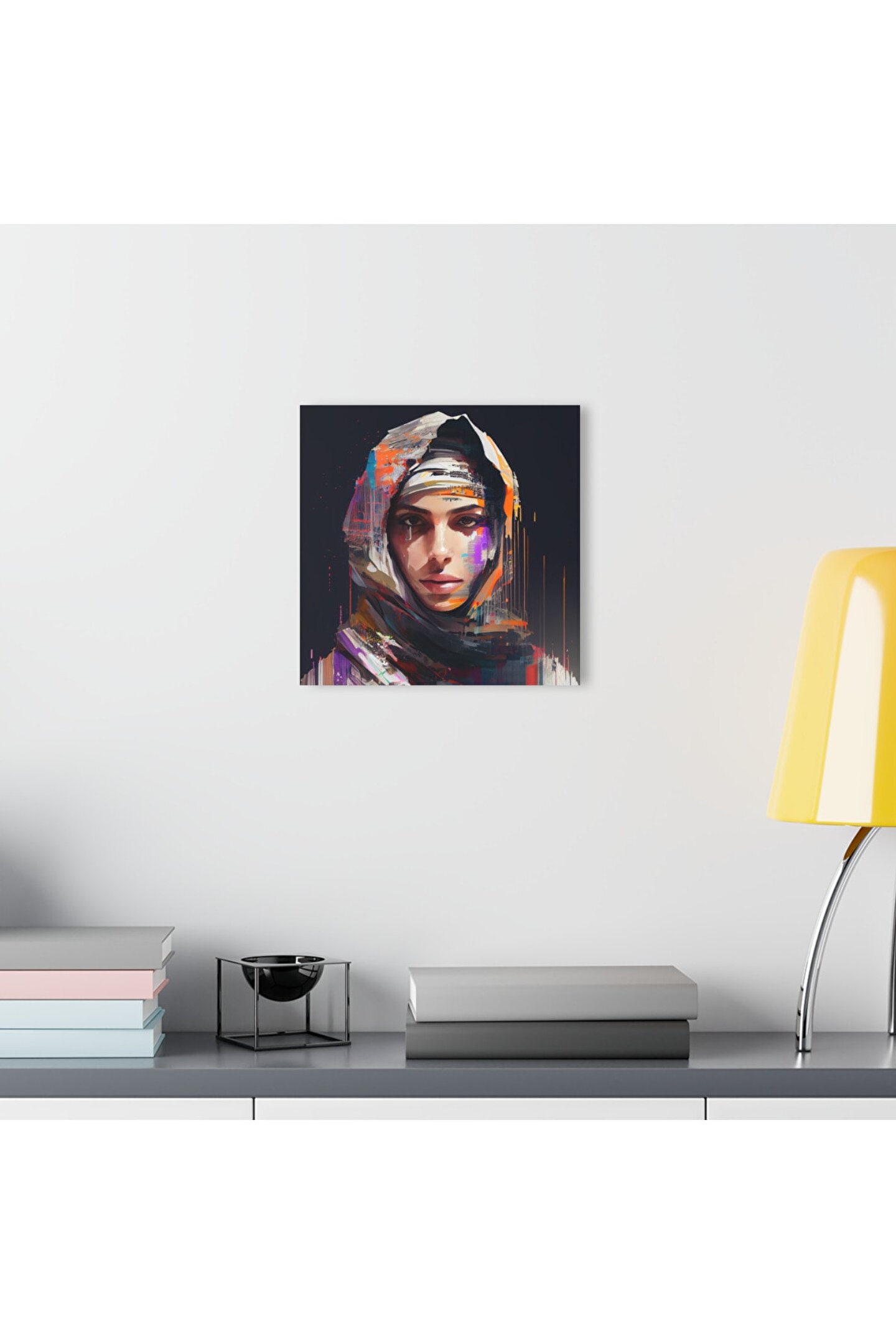 LEYLASER Müslüman Kız Sulu Boya Türban Başörtüsü İslam Cam Tablo Duvar Dekoru