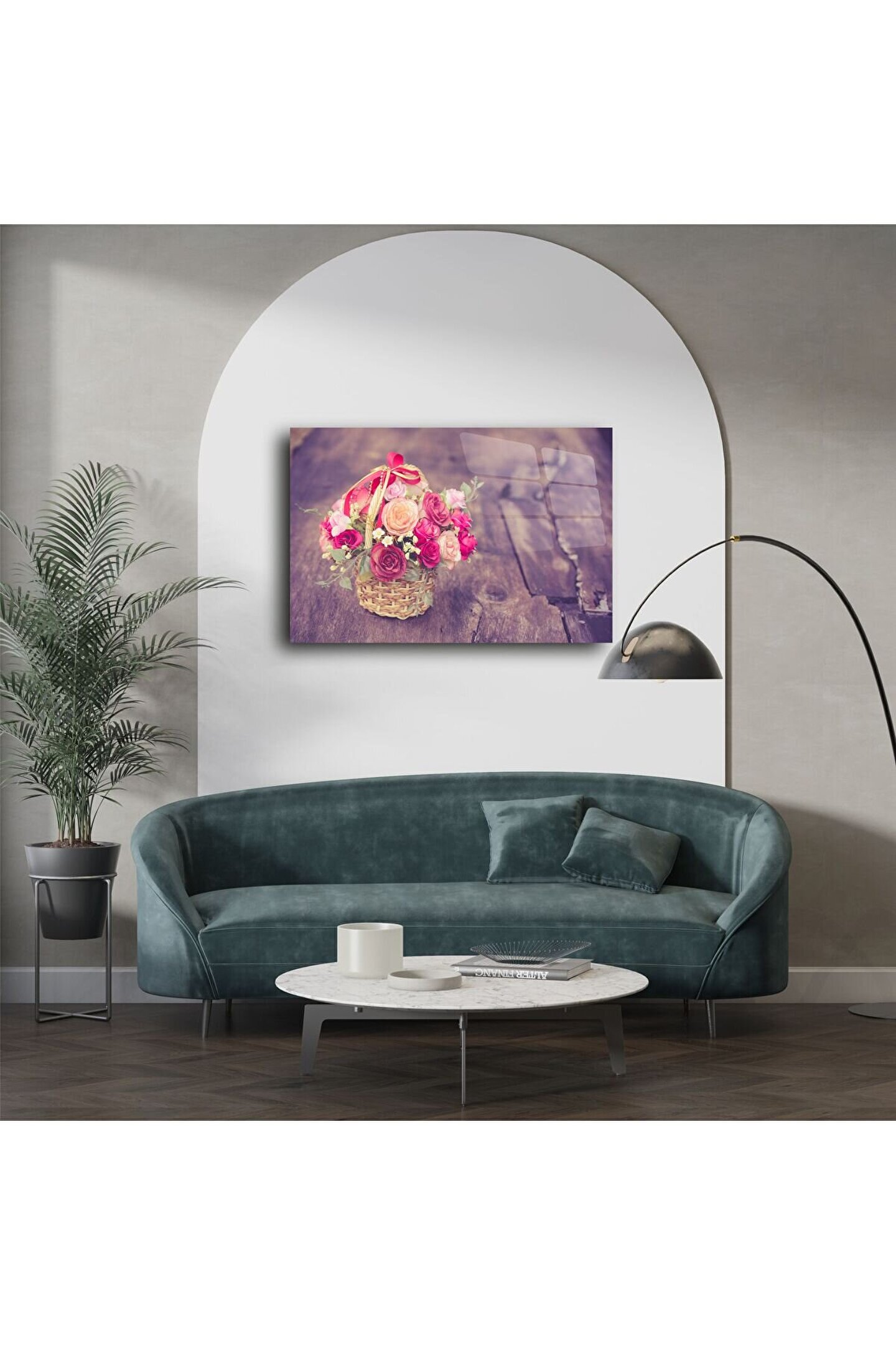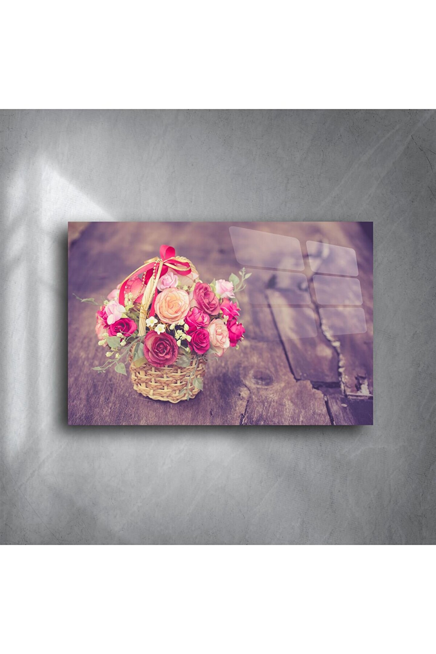 Bu romantik vintage çiçek sepeti posteri, yumuşak pembe ve pastel tonlarındaki güllerle kalbinize dokunur. Sepetin zarafeti ve arka planın rustik ahşap dokusu nostalji ve huzur hissi uyandırır.