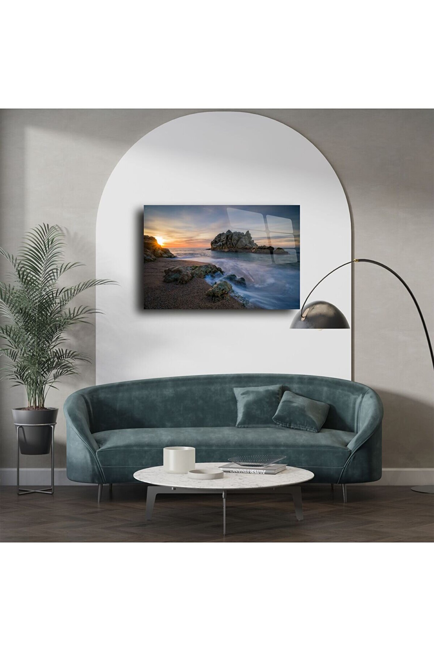 Doğanın sade ama etkileyici anlarını sevenler için tasarlanmış bu sanat eseri, zarafet ve huzuru evinize taşır. Camın yüksek parlaklığı ve netliği; yumuşak su yansımalarını ve gün ışığının kayalıklardaki dansını göz alıcı şekilde ortaya çıkarır. Bu sadece bir dekor değil — duygusal bir kaçış noktasıdır.
