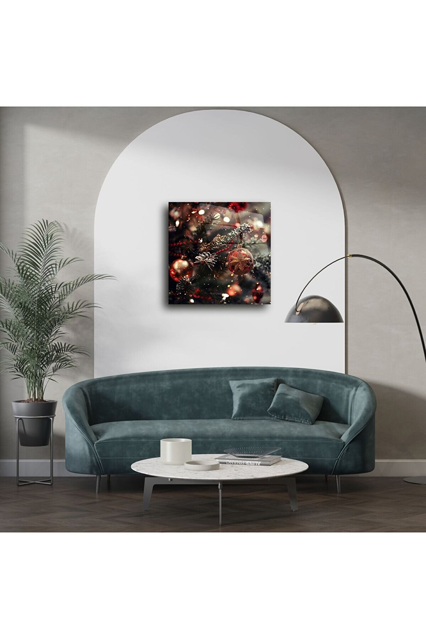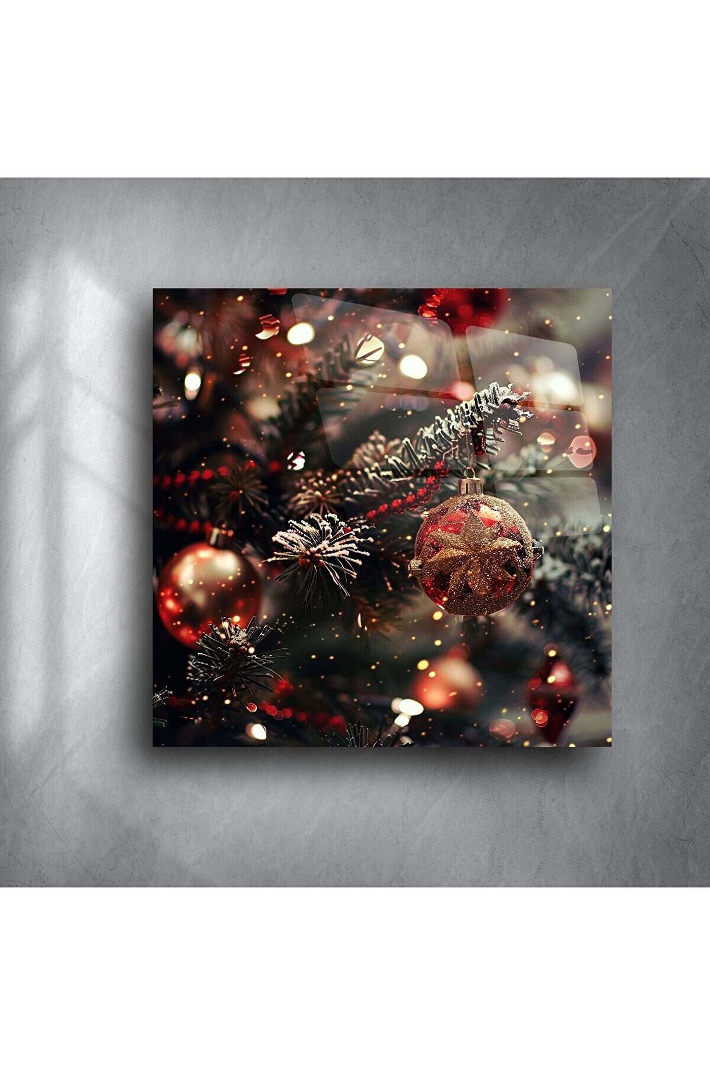 Parıltılı kırmızı ve altın tonlarındaki bu cam üzerine basılmış yılbaşı ağacı süsü, yılın en büyülü zamanını duvarınıza taşıyor. El işçiliği detayları ve ışığı yakalayan ışıltısı ile her bakışta sıcaklık ve nostalji hissi uyandırır.