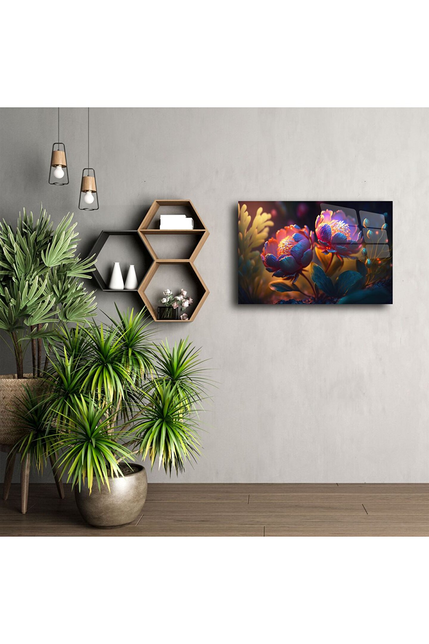Canlı renkleriyle iç mekânlara hayat veren bu premium cam tablo, parlak yüzeyli çiçek tasarımıyla doğanın zarafetini duvarlarınıza taşıyor. Işıltılı botanik detayları ve derinlik hissi veren üç boyutlu dokusuyla lüks ve modern tarzı bir araya getiriyor.